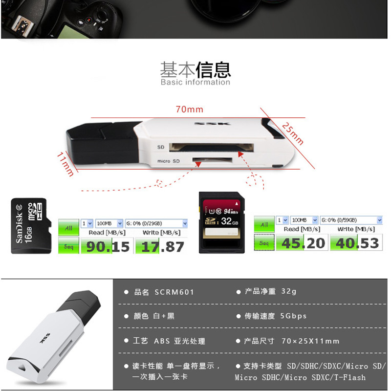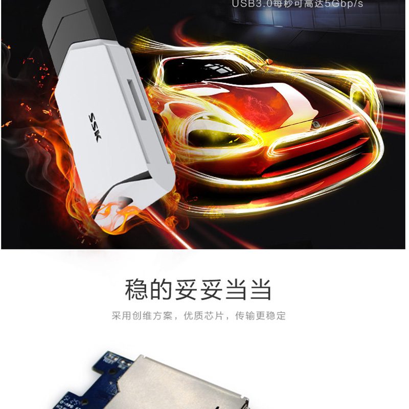 飚王(SSK) SCRM601 多功能二合一讀卡器 USB3.0高速讀寫 支持TF手機內(nèi)存卡SD相機卡