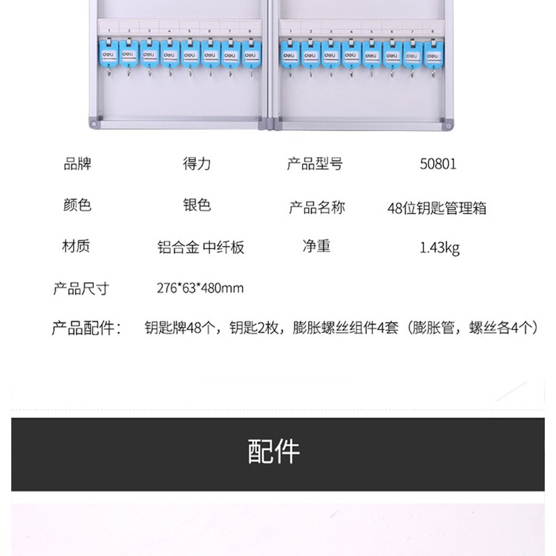 得力(deli) 50801 48位鋁合金鑰匙管理箱 鑰匙整理收納柜(銀)