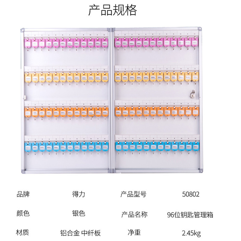 得力(deli) 50802 96位鋁合金鑰匙管理箱 鑰匙整理收納柜(銀)