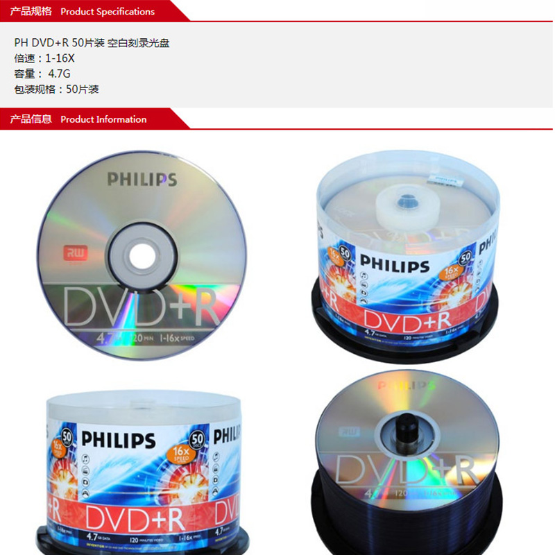 飛利浦(PHILIPS) DVD+R空白光盤/刻錄盤 16速4.7G 桶裝50片