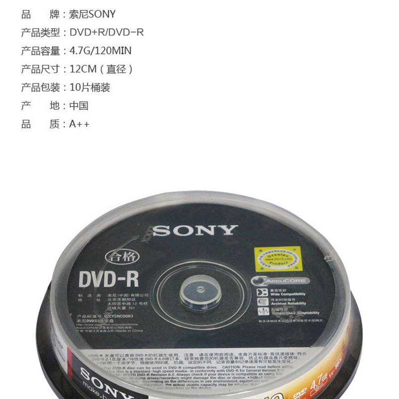 索尼(SONY) DVD-R光盤/刻錄盤 16速4.7G 桶裝10片