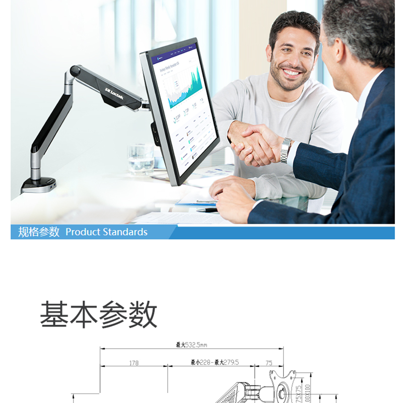 適用17-32英寸,鋁合金支臂,橫豎屏切換,USB接口,節(jié)省桌面空間 ?