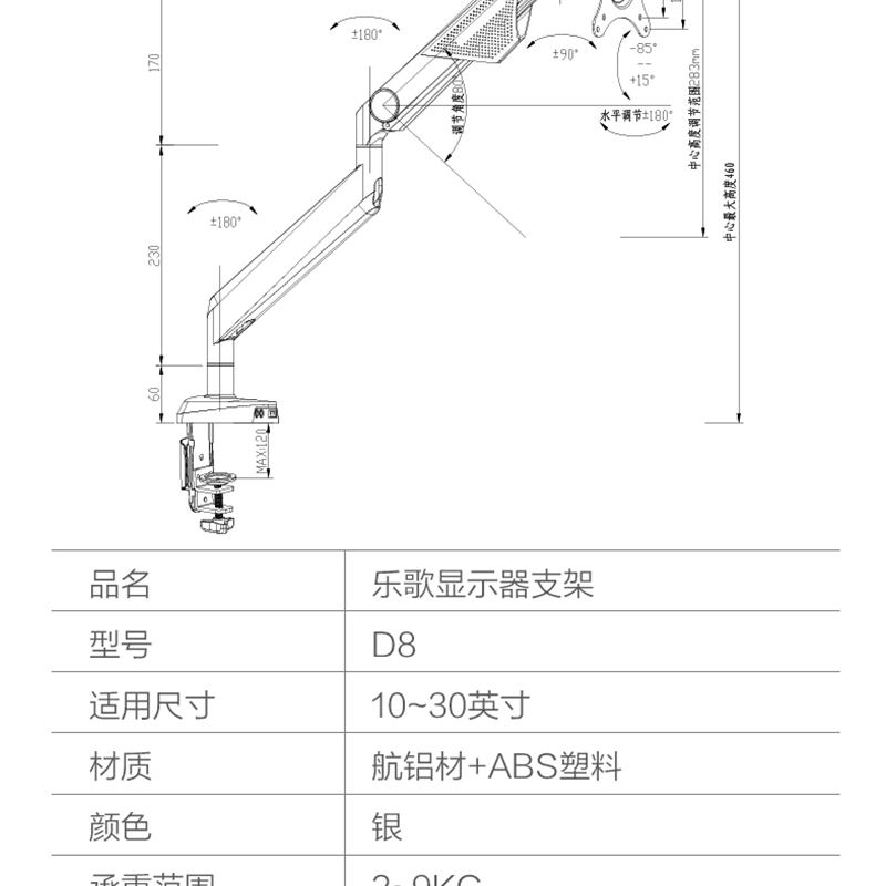 樂(lè)歌(Loctek) D8A 液晶電腦桌面支架 顯示屏升降多功能旋轉(zhuǎn)架