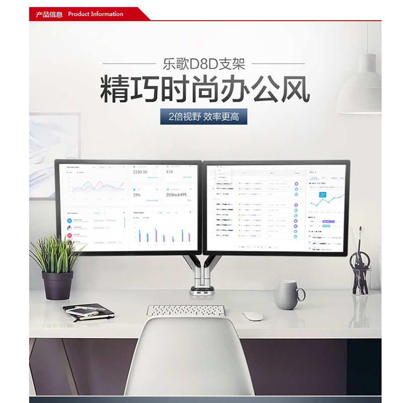 樂(lè)歌(Loctek) D8D 多功能旋轉(zhuǎn)雙屏桌面架顯示器支架臂