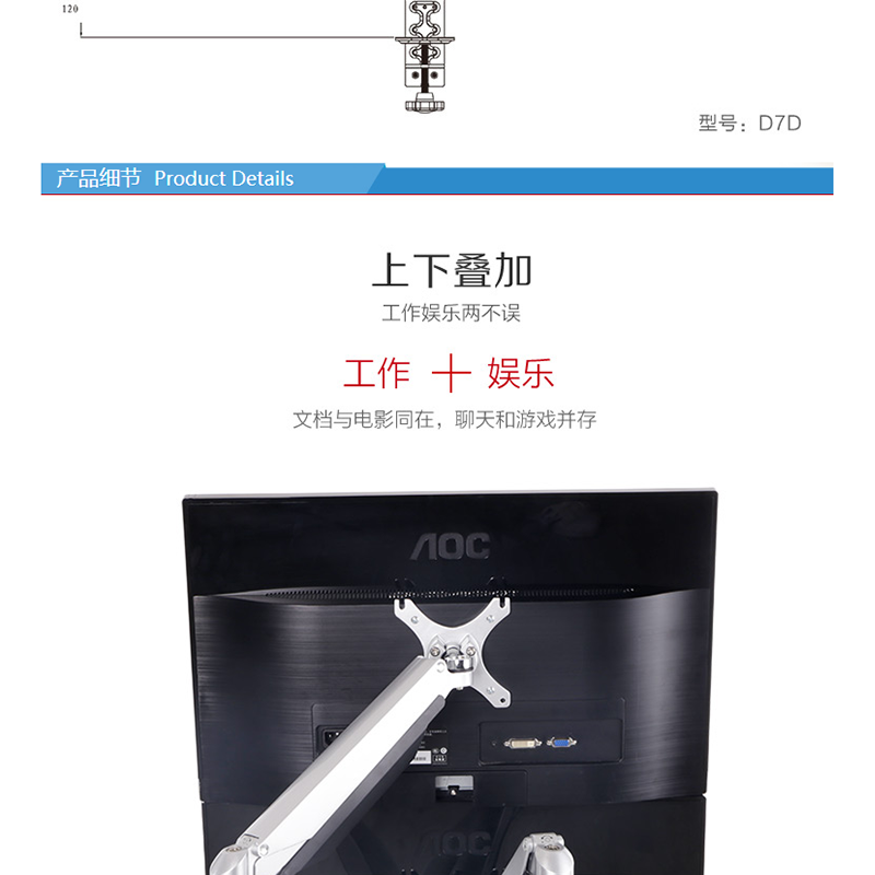 樂(lè)歌(Loctek) D7D 雙屏顯示器支架 旋轉(zhuǎn)升降伸縮支架