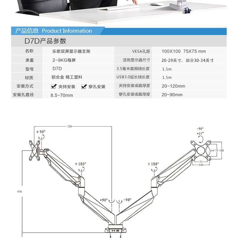 氣彈簧升降,自由懸停,橫豎屏瀏覽,傾仰調(diào)節(jié) ?