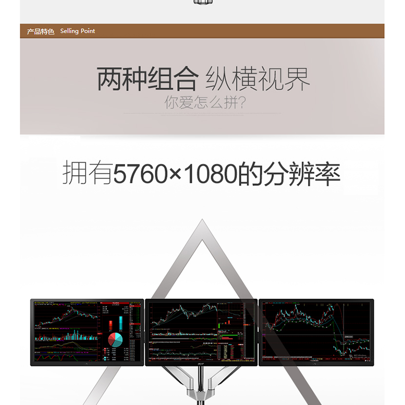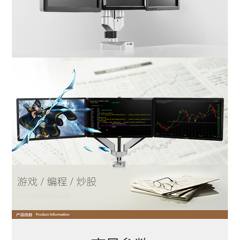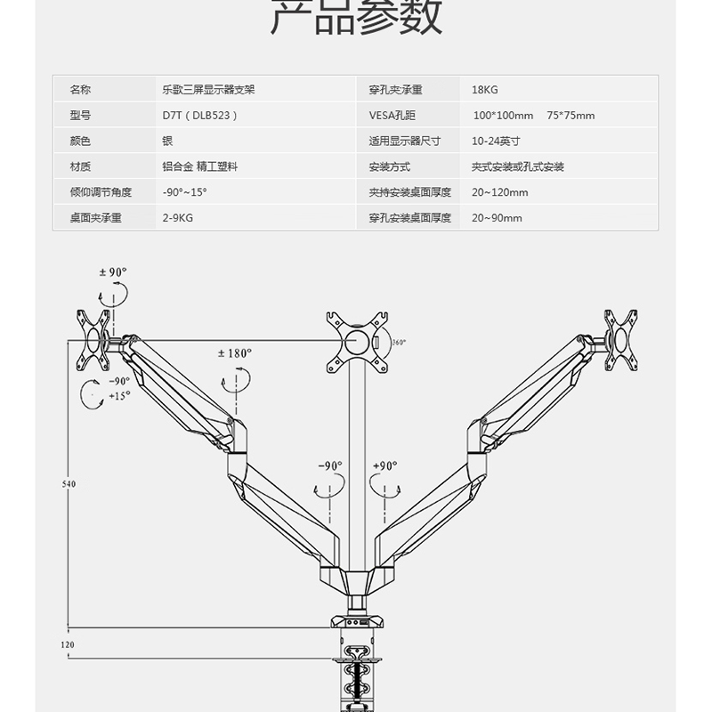 樂歌(Loctek) D7T 三屏顯示器支架 旋轉(zhuǎn)伸縮全鋁支架