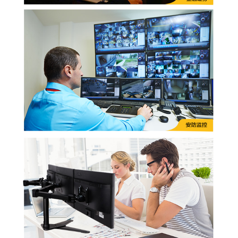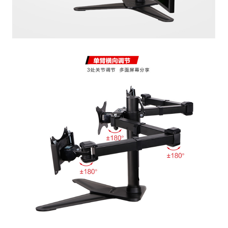適用10-30英寸,直接擺放桌面,底座穩(wěn)固,多屏拼接,數(shù)據(jù)盡收眼底,適用于金融/證券/安防/監(jiān)控 ?
