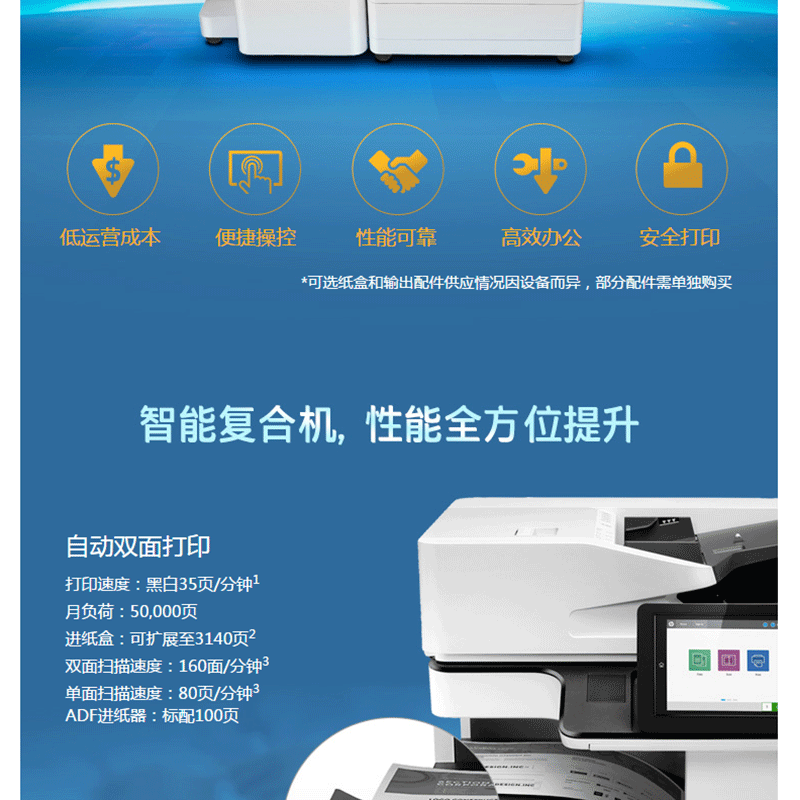 惠普新品!超低運(yùn)營(yíng)成本!打印速度:35頁(yè)/分鐘,ADF容量:100頁(yè) ?