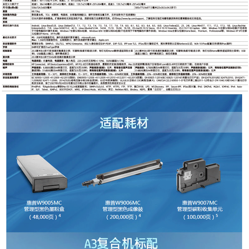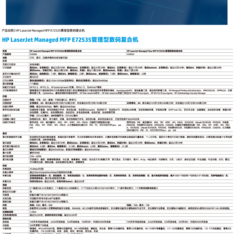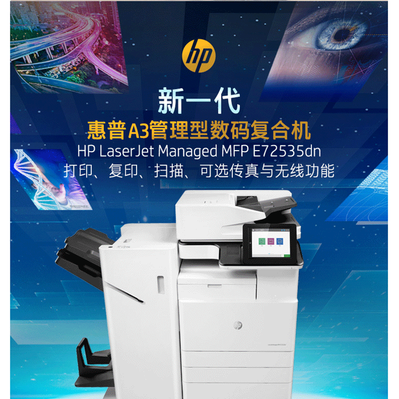 惠普(HP) LaserJet Managed Flow MFP E72535dn A3幅面管理型數(shù)碼 黑白激光多功能一體機(jī)(打印/復(fù)印/掃描)