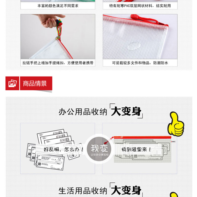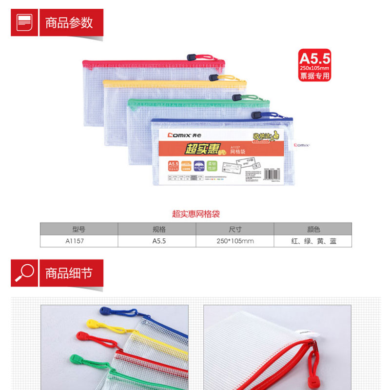 齊心(COMIX) A1157 A5.5防潮網(wǎng)格拉鏈袋/文件袋/資料袋 顏色隨機(jī)250*105mm 10個(gè)/包