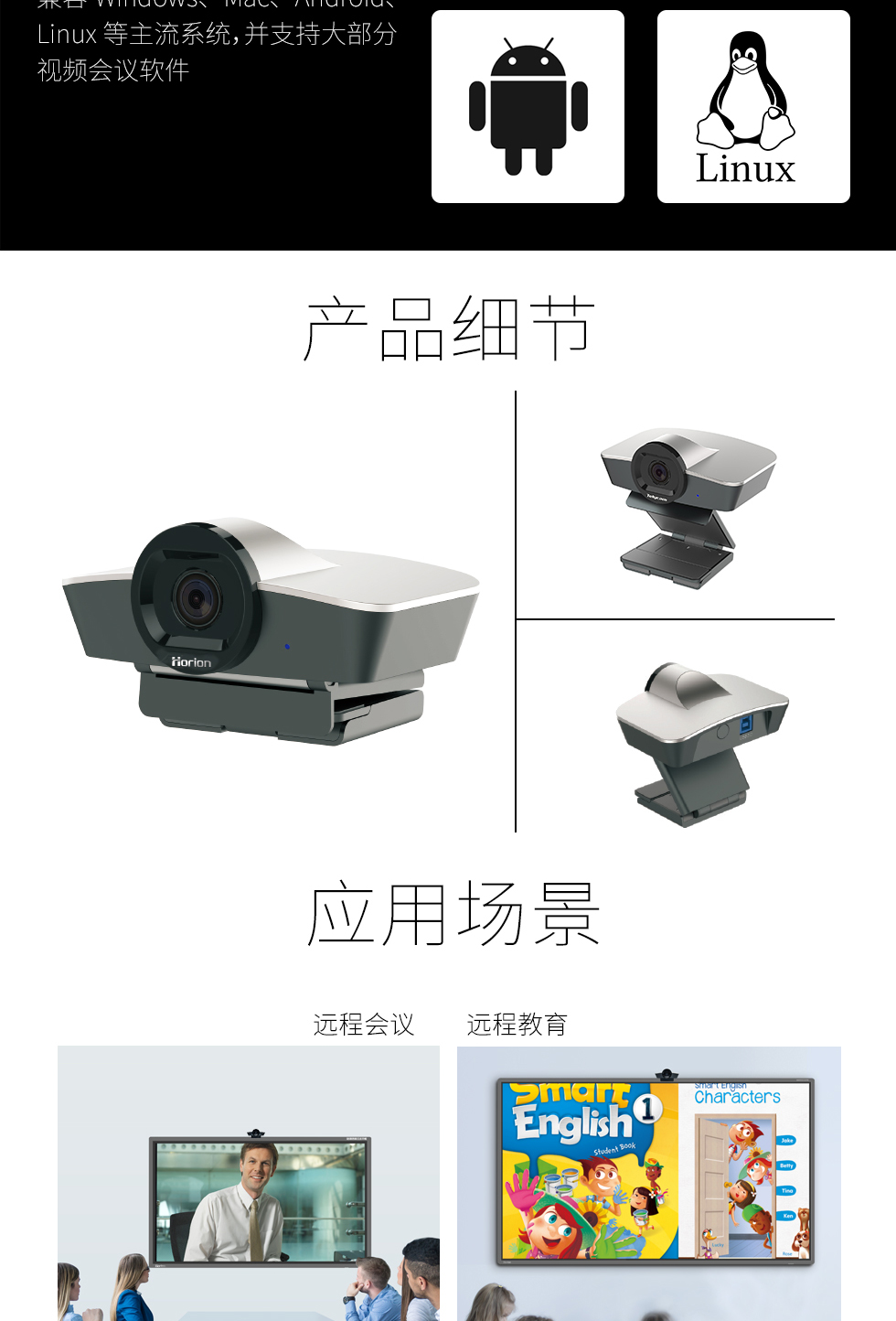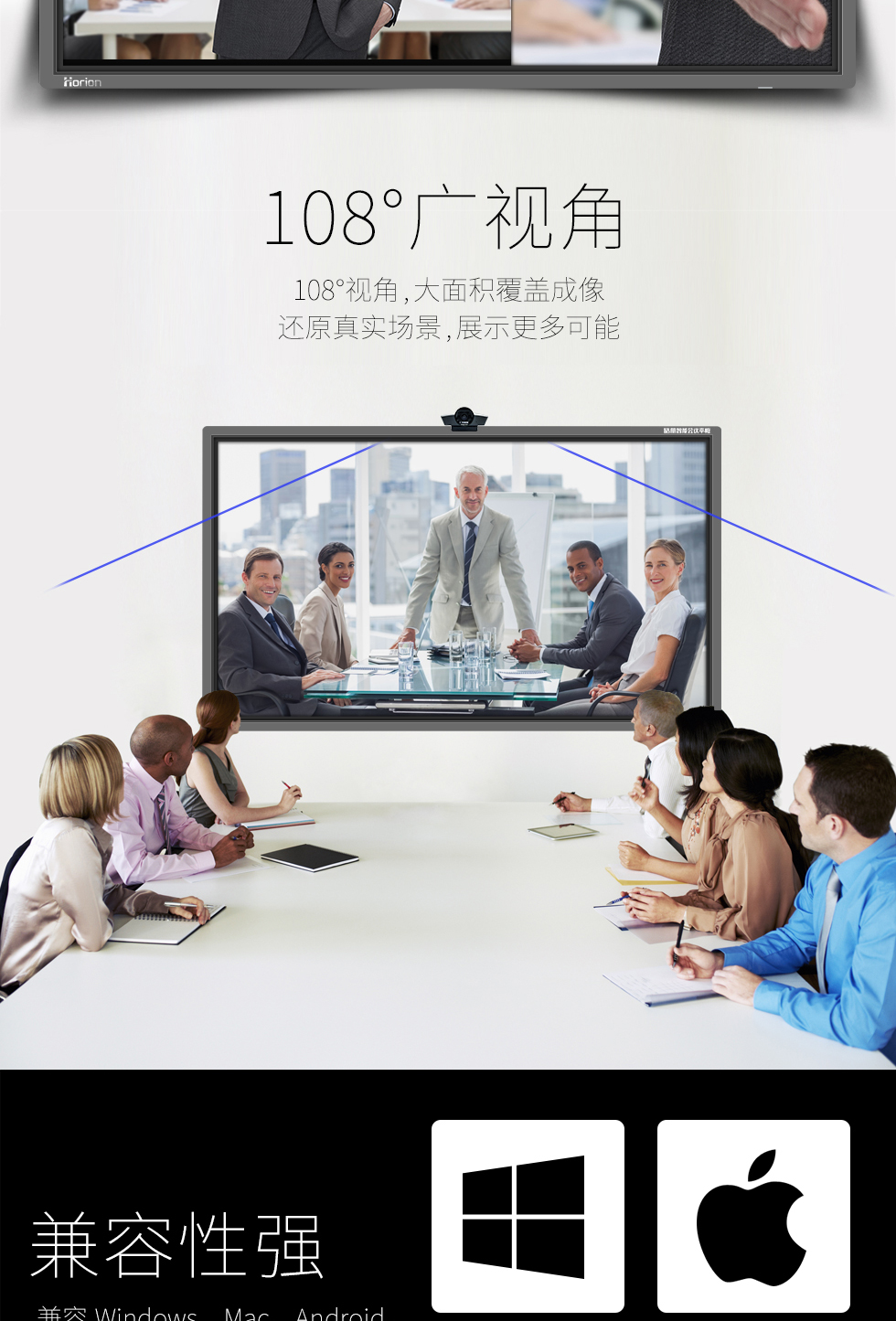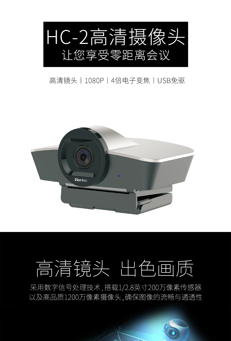 皓麗(Horion) HC-2 高清智能攝像頭 臺(tái)式電腦電視遠(yuǎn)程會(huì)議 會(huì)議平板專用