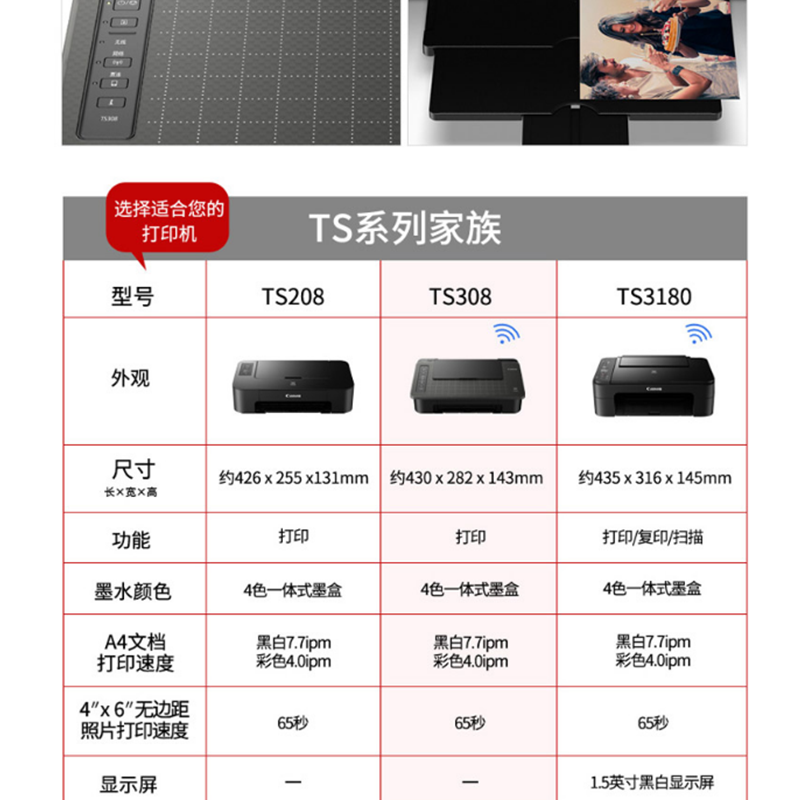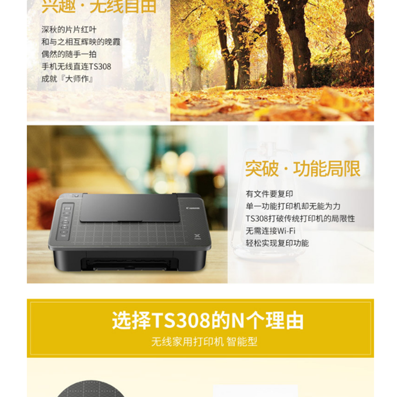 佳能(Canon) TS308 無線家用噴墨打印機(jī) 智能型