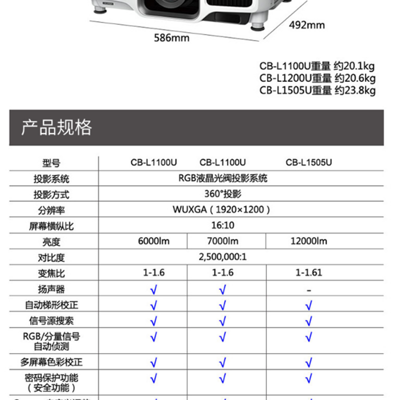 愛普生(EPSON) CB-L1505UH NL 激光工程投影儀 投影機(jī)(12000流明,超高清)