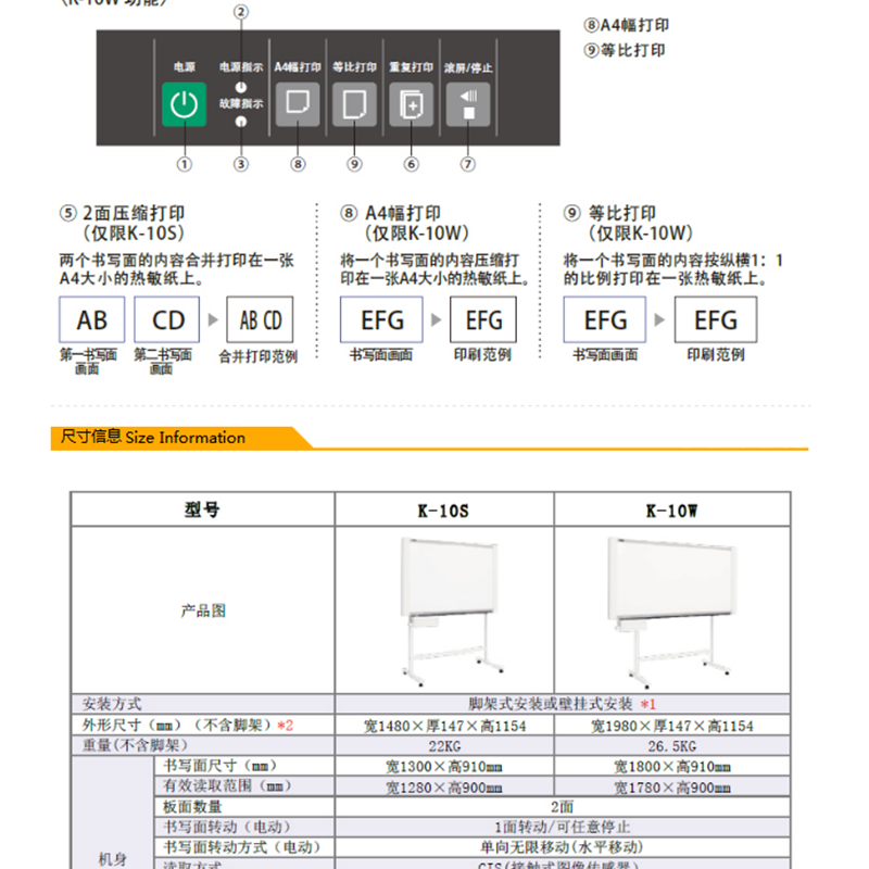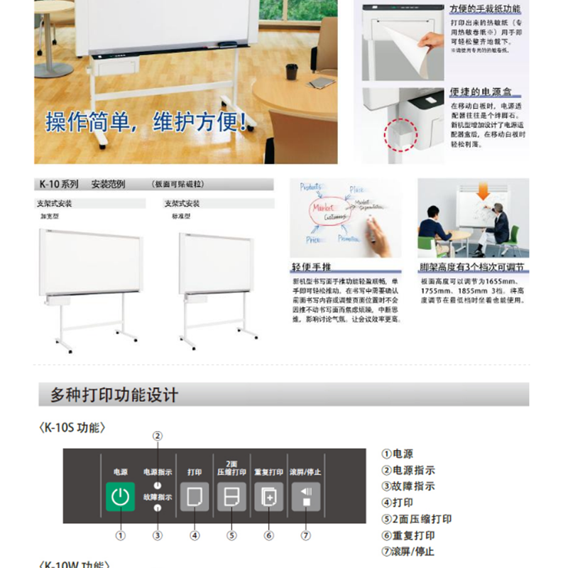 書寫面積:910x1800mm(雙面),熱敏復(fù)印,復(fù)印速度14s/張,板面可貼磁粒 ?
