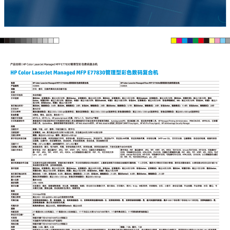 惠普(HP) LaserJet Managed Flow MFP E77830z A3幅面管理型數(shù)碼 彩色激光多功能一體機(打印/復印/掃描)
