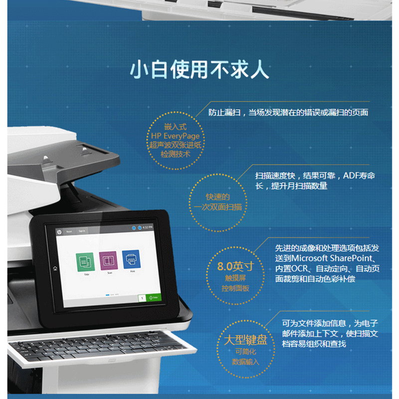 惠普新品!超低運營成本!黑彩同速:30頁/分鐘,ADF容量:250頁 ?