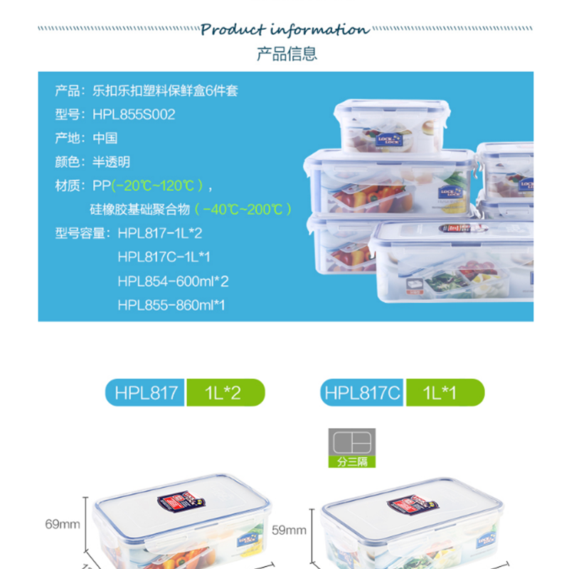 樂扣樂扣(locklock) HPL855S002 保鮮盒微波爐飯盒 便當(dāng)盒6件套