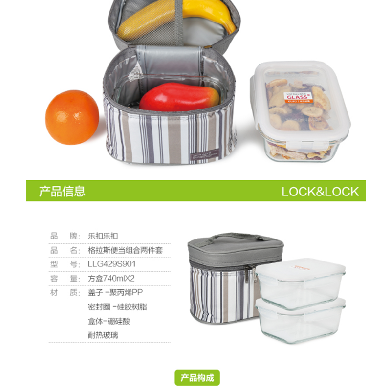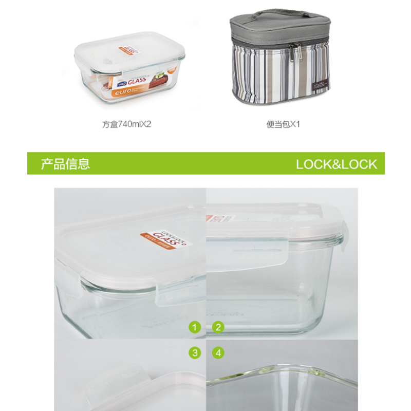 樂扣樂扣(locklock) LLG429S901 耐熱玻璃便當(dāng)組合兩件套740ml*2個(gè)