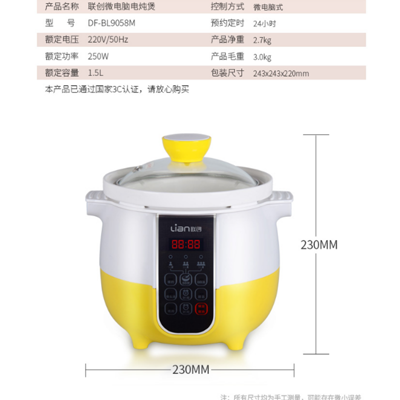 聯(lián)創(chuàng)(Lianc) DF-BL9058M 電燉鍋多功能預(yù)約陶瓷內(nèi)膽電燉盅