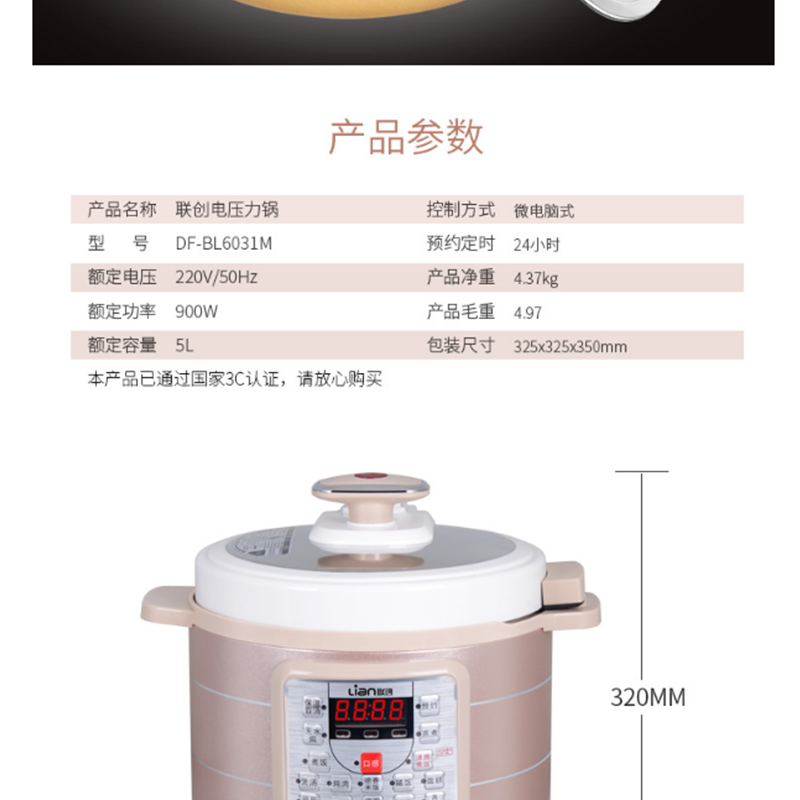 聯(lián)創(chuàng)(Lianc) DF-BL6031M 電壓力鍋電飯煲全密封烹調(diào) 容量5L