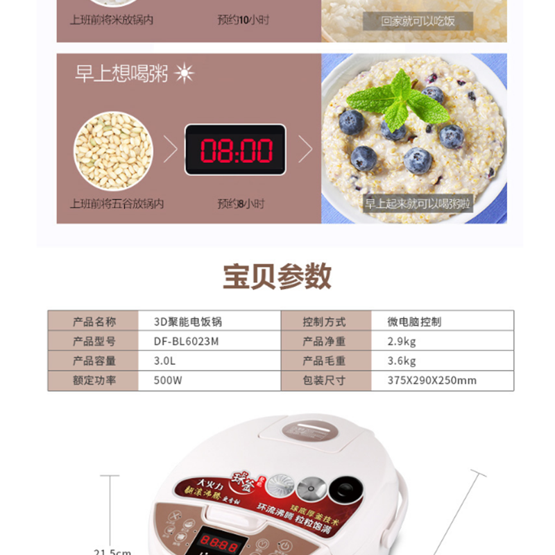 聯(lián)創(chuàng)(Lianc) DF-BL6023M 電飯煲 智能預(yù)約電飯鍋 3L容量