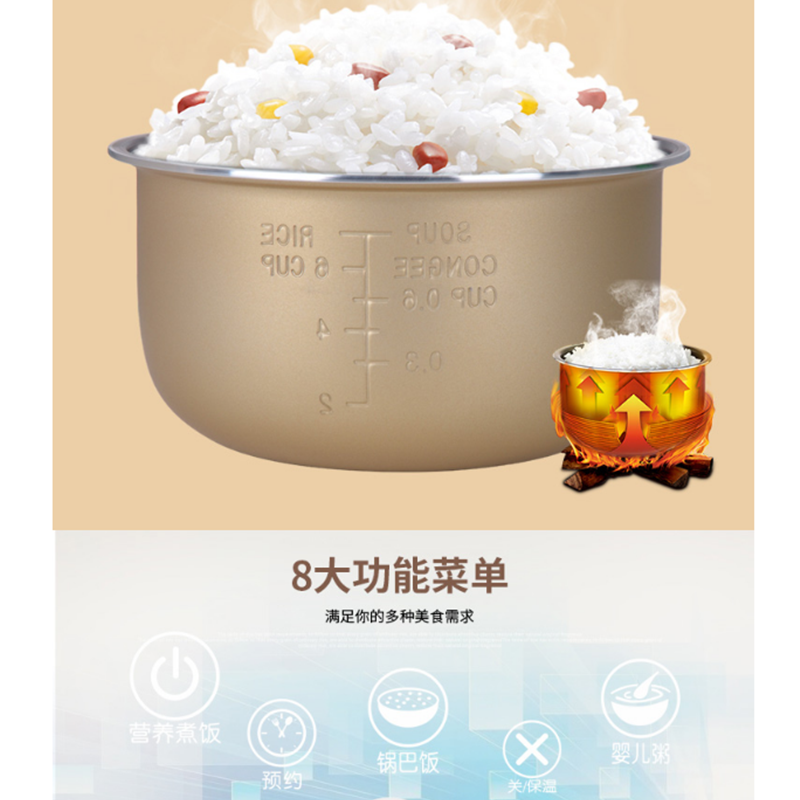 3D立體加熱發(fā)熱盤,搭配黃晶斧形聚能內(nèi)膽,煮出原香柴火好米飯 ?