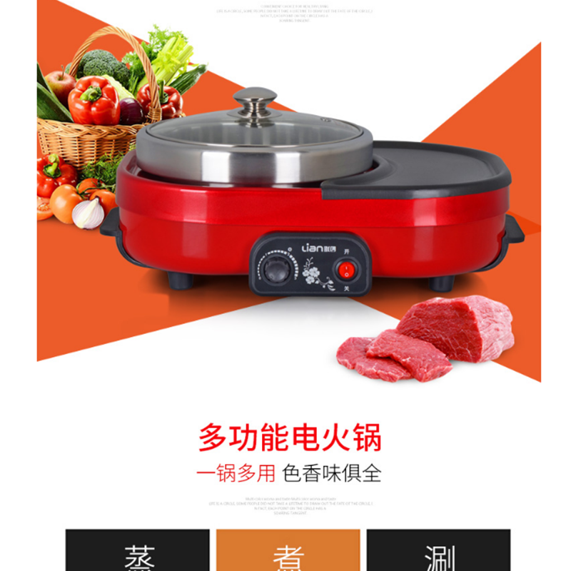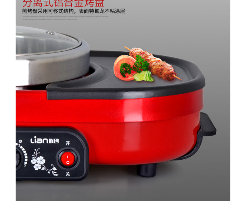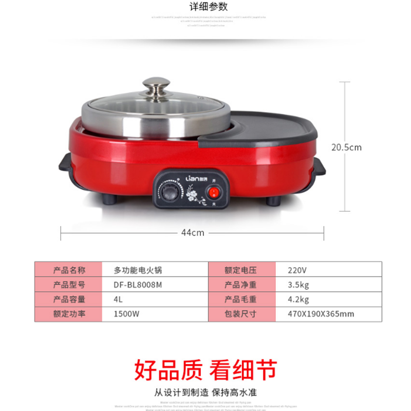 聯(lián)創(chuàng)(Lianc) DF-BL8008M 家用多功能一體無(wú)煙電烤盤(pán)烤涮一體鍋 4L