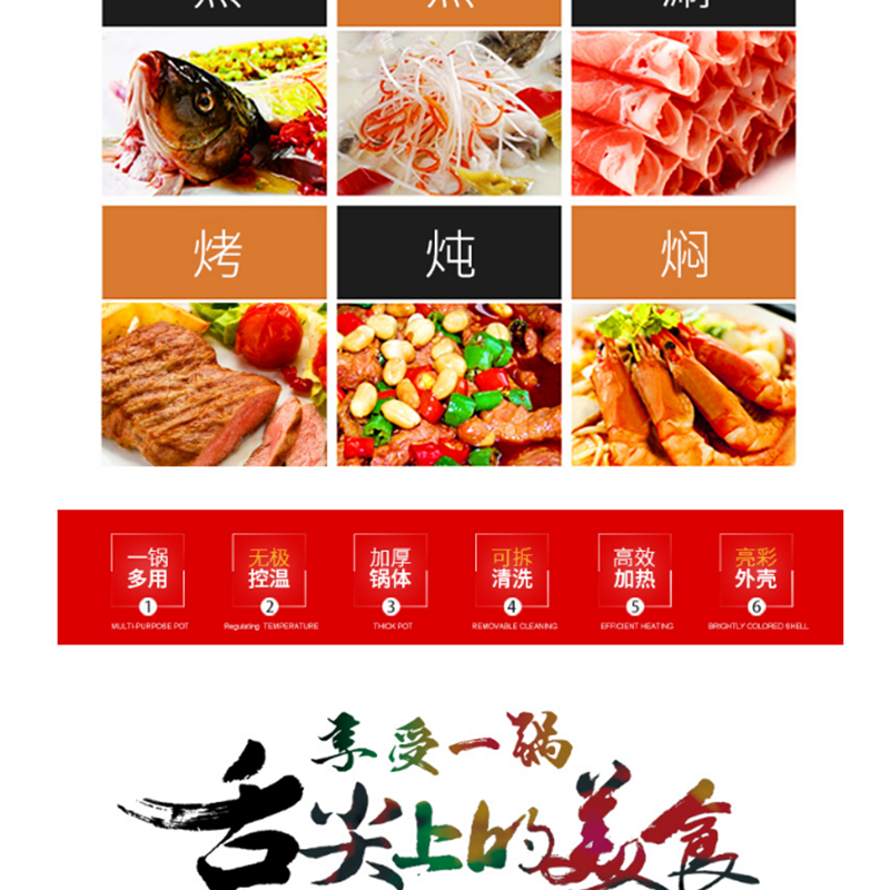 一鍋多用:煎、烤、煮、燜、火鍋食品級(jí)不銹鋼+優(yōu)質(zhì)鋁合金烤盤(pán)+優(yōu)質(zhì)不 銹鋼發(fā)熱體+優(yōu)質(zhì)鋼化玻璃蓋 ?
