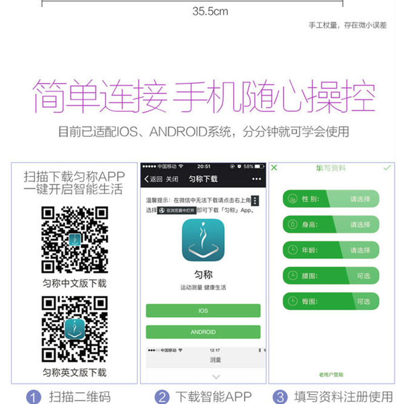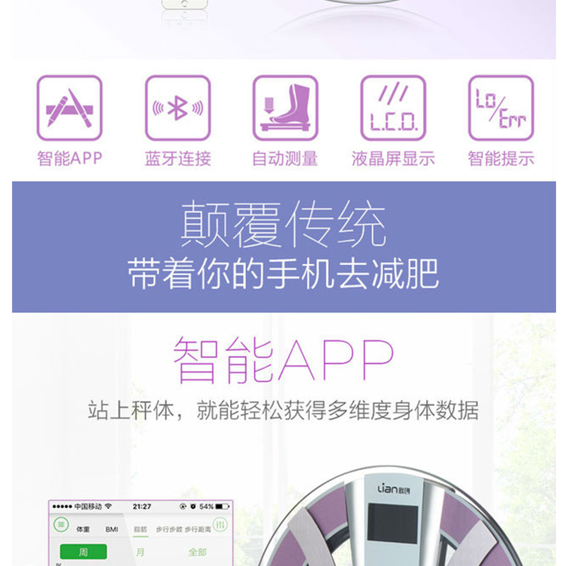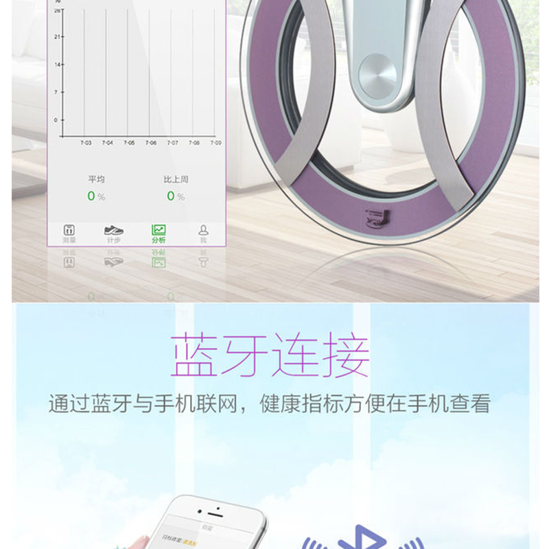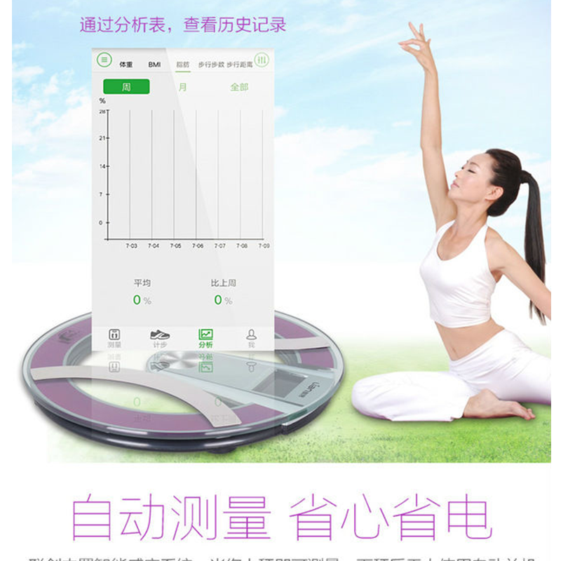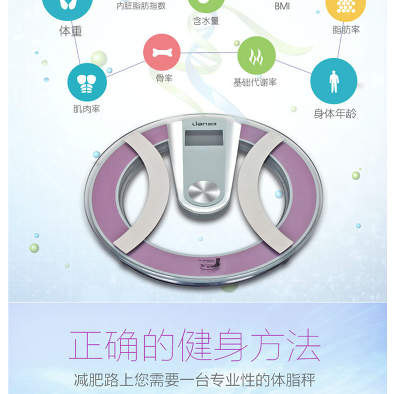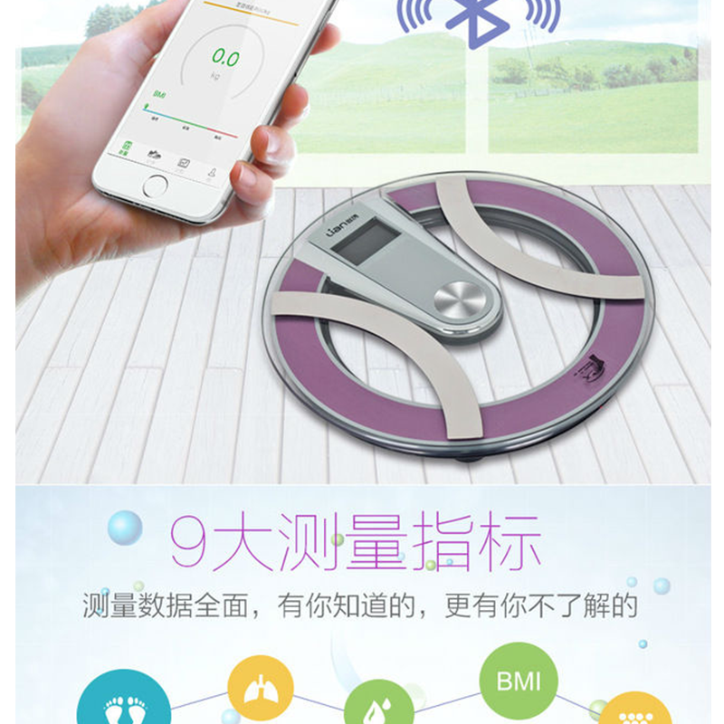 本產(chǎn)品可以測(cè)量:體重、BMI、脂肪率、骨率、身體年齡、含水量、肌肉率、基礎(chǔ)代謝率、內(nèi)臟脂肪率,等九項(xiàng)指標(biāo) ?