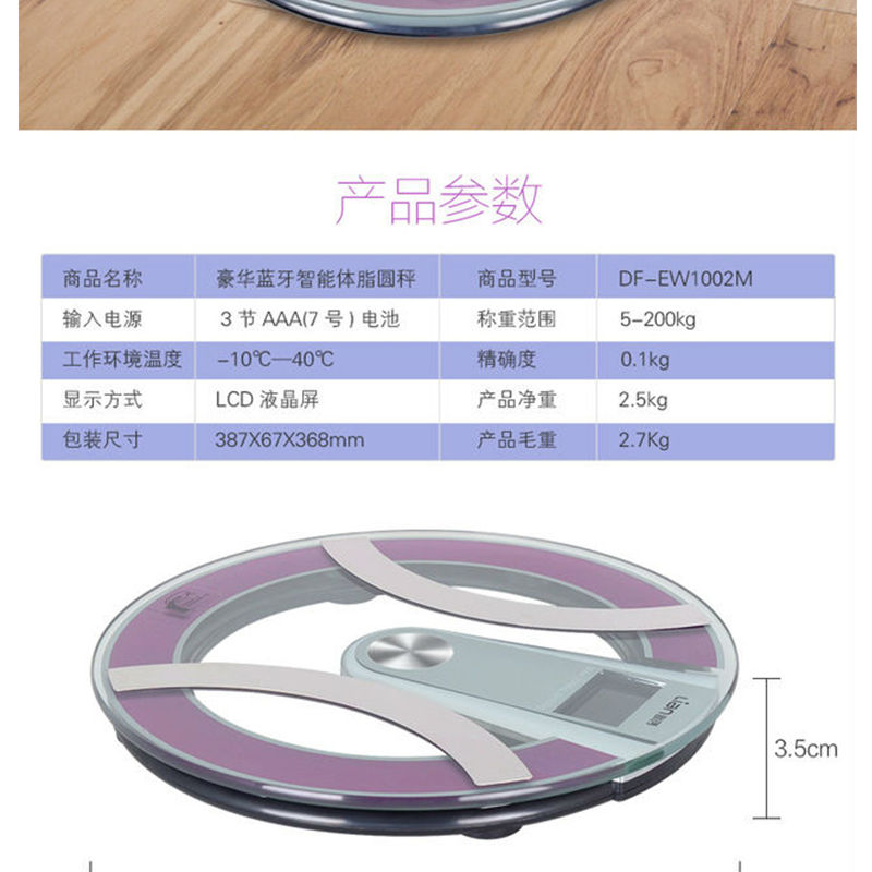 聯(lián)創(chuàng)(Lianc) DF-EW1002M 豪華藍(lán)牙智能體脂圓秤 人體秤