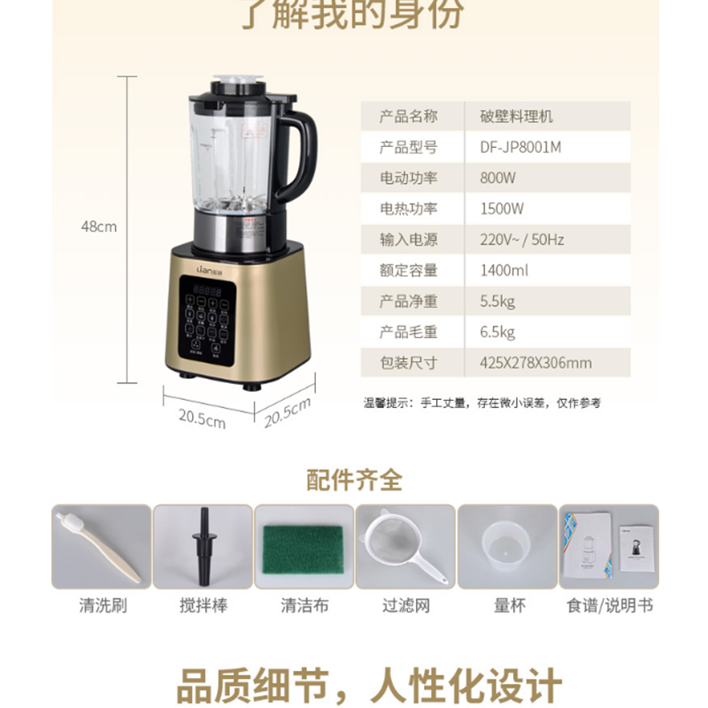 聯(lián)創(chuàng)(Lianc) DF-JP8001M 破壁機多功能加熱家用料理機攪拌機 1400ml