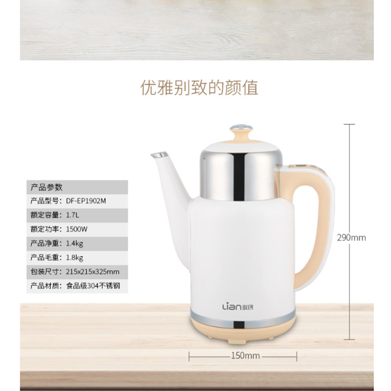 聯(lián)創(chuàng)(Lianc) DF-EP1902M 保溫不銹鋼內(nèi)膽電熱水壺 除氯 1.7L