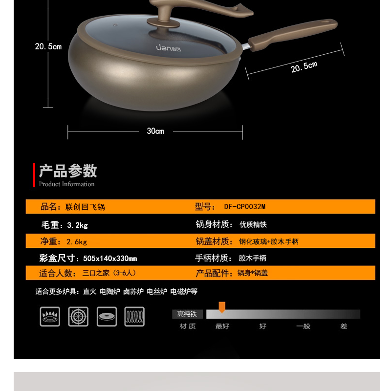 聯(lián)創(chuàng)(Lianc) DF-CP0032M 回飛鍋不粘鍋炒鍋 無(wú)油煙 通用爐灶