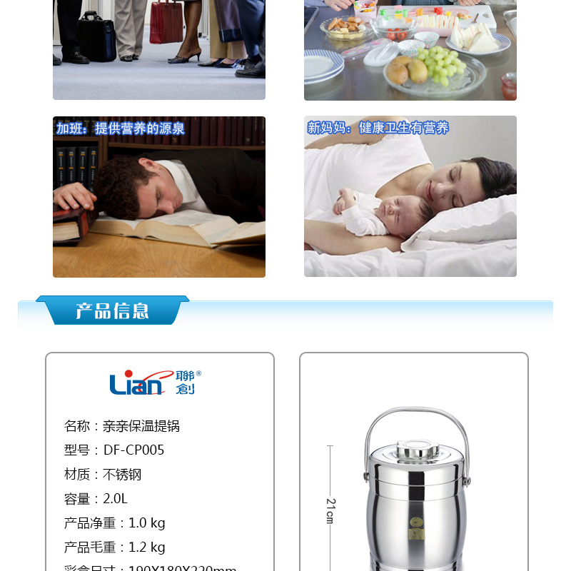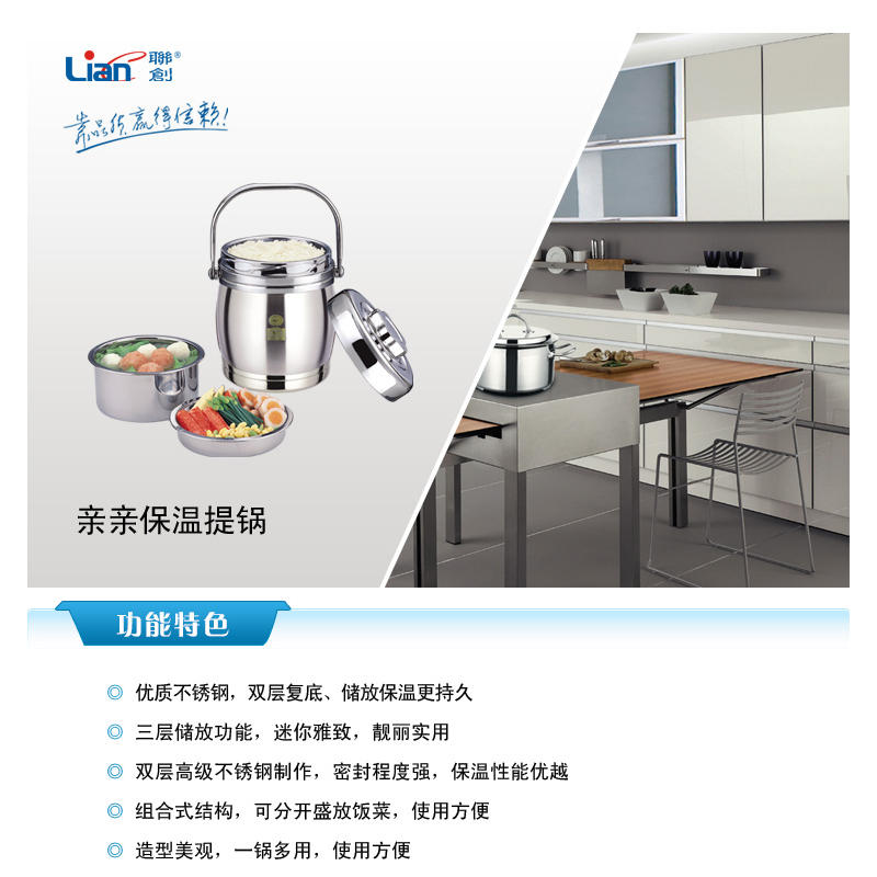 聯(lián)創(chuàng)(Lianc) DF-CP005M 親親保溫提鍋 雙層不銹鋼 三層儲(chǔ)放功能