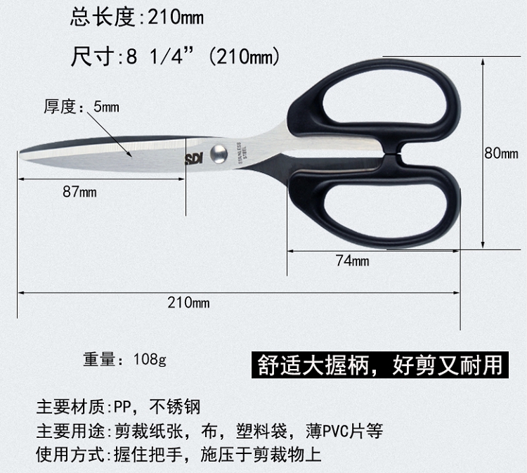 手牌(SDI) 0843C 大號剪刀辦公家用廚房剪子小手工美工剪紙刀文具用品0843C 辦公剪刀