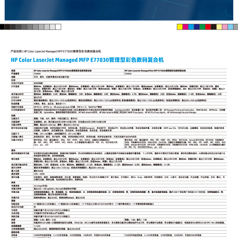 惠普(HP) LaserJet Managed Flow MFP E77830dn A3幅面管理型數(shù)碼 彩色激光多功能一體機(打印/復(fù)印/掃描)