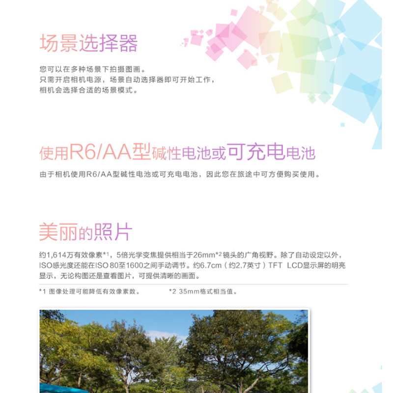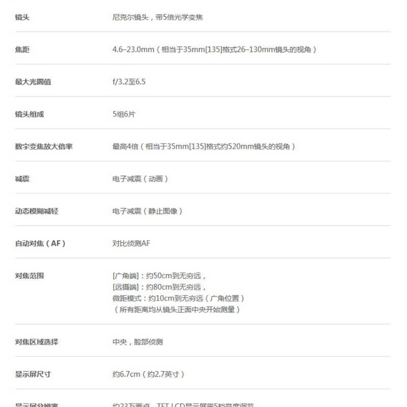 輕便易攜帶,5倍光學(xué)變焦的26mm鏡頭,約1614萬(wàn)有效像素 ?