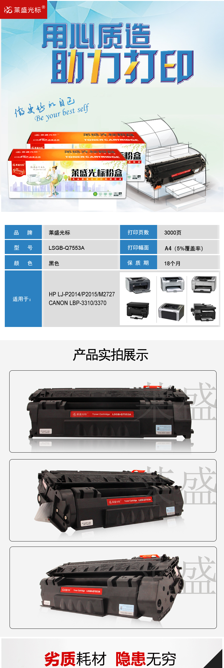 萊盛(laser) LSGB-Q7553A 打印機硒鼓