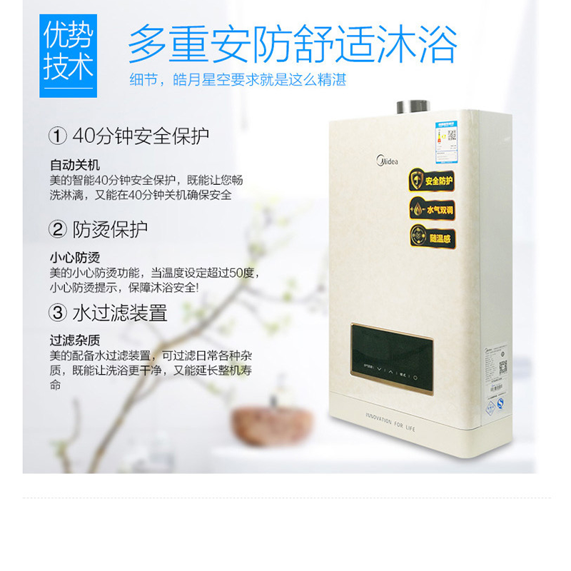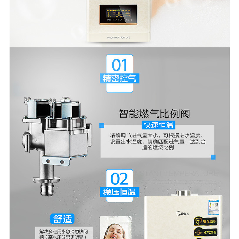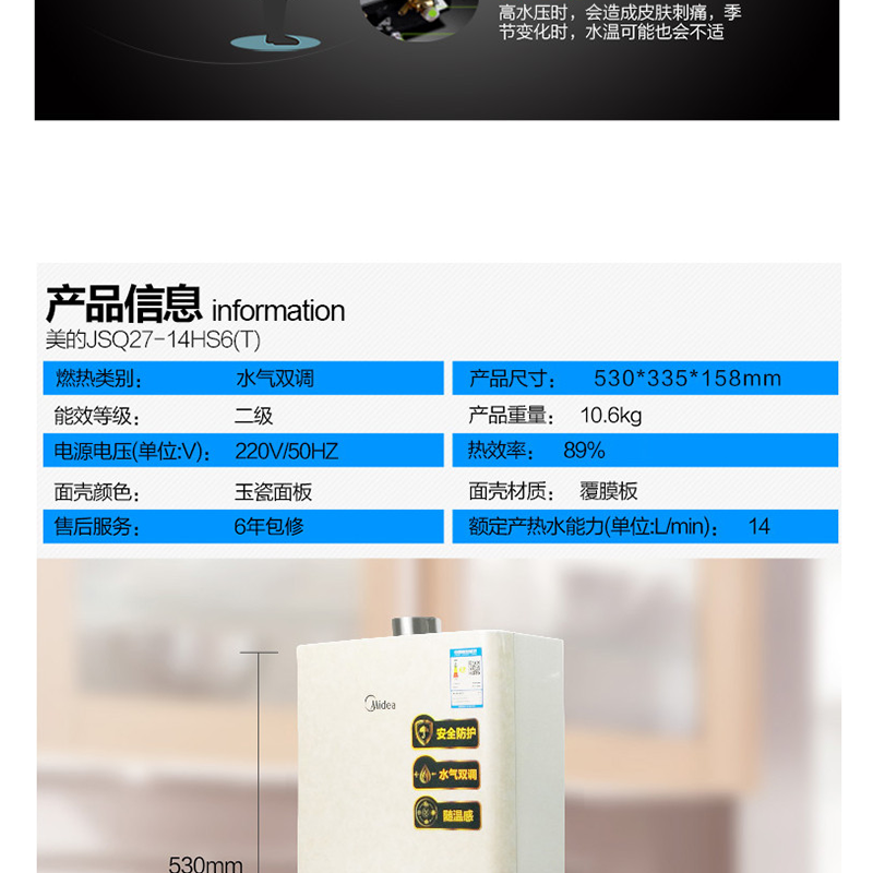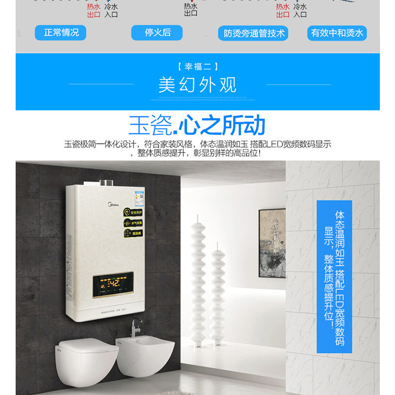 美的(Midea) JSQ27-14HS6(T) 燃氣熱水器14升智能隨溫感 恒溫 商場同款 玉瓷外觀