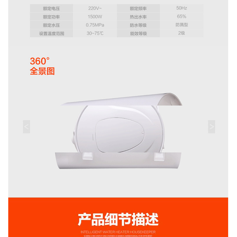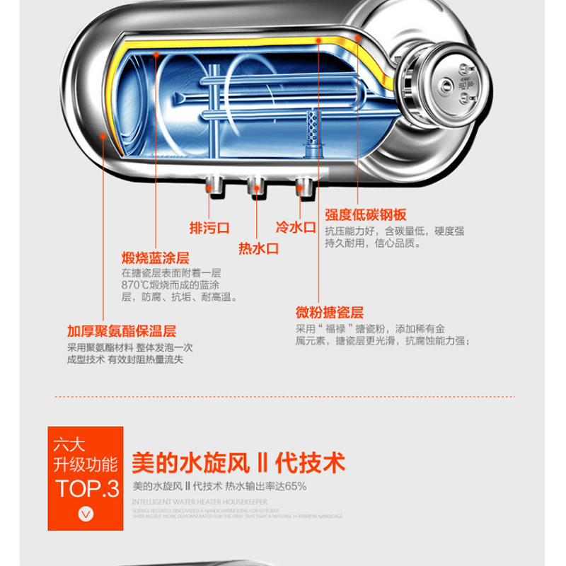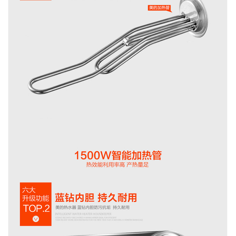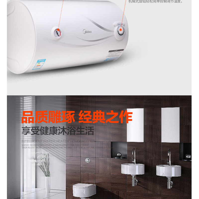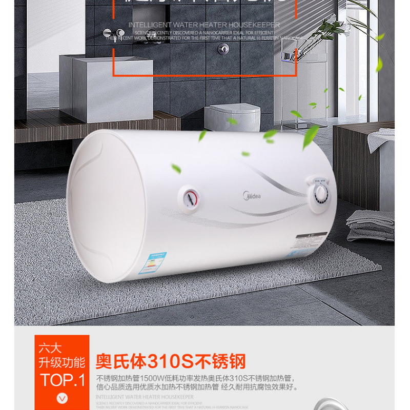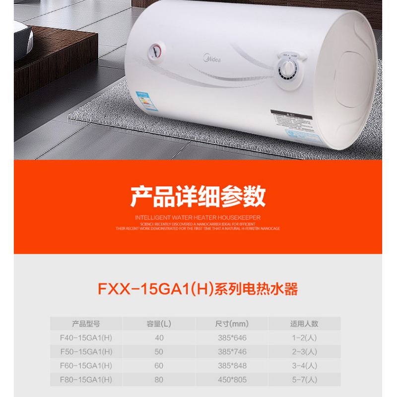 美的(Midea) F50-15GA1 50升電熱水器 質保8年 防電閘安全防護 機械式旋鈕 藍鉆內膽