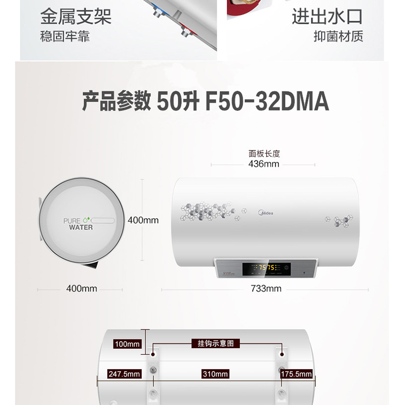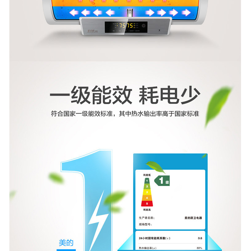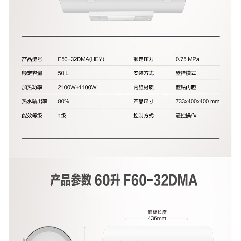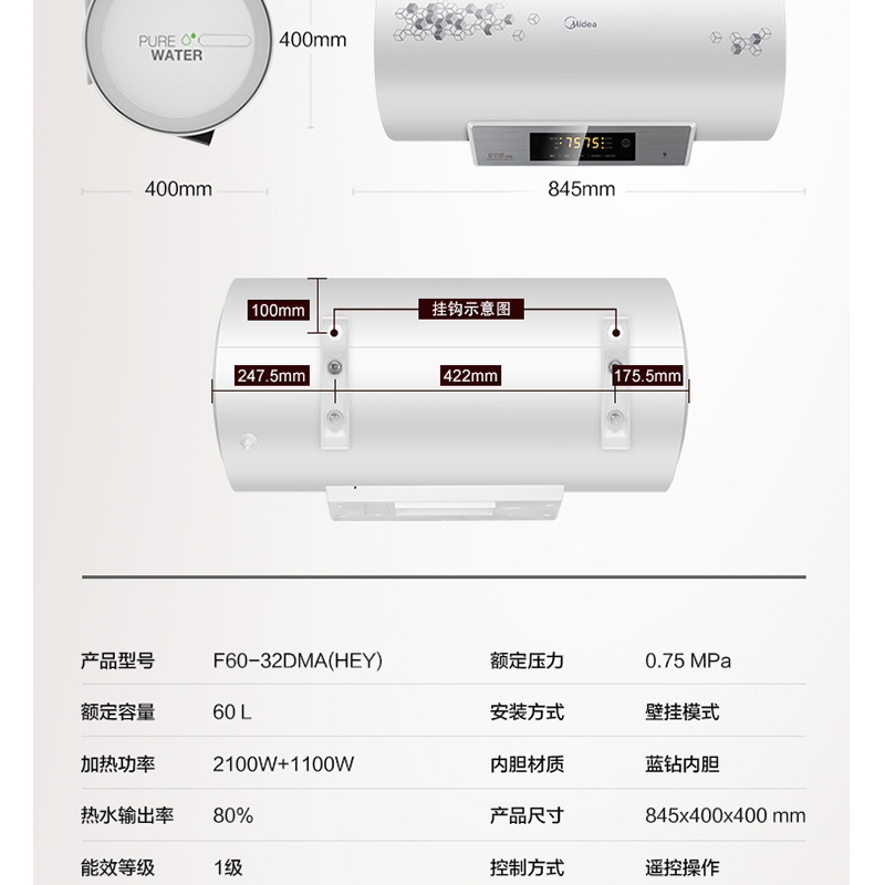 美的(Midea) F60-32DMA(HEY) 雙重防漏電預(yù)約洗浴無線遙控一鍵自動關(guān)機60升電熱水器