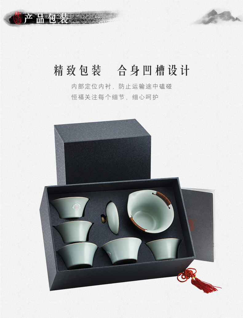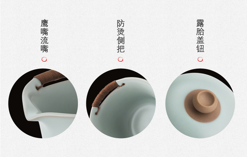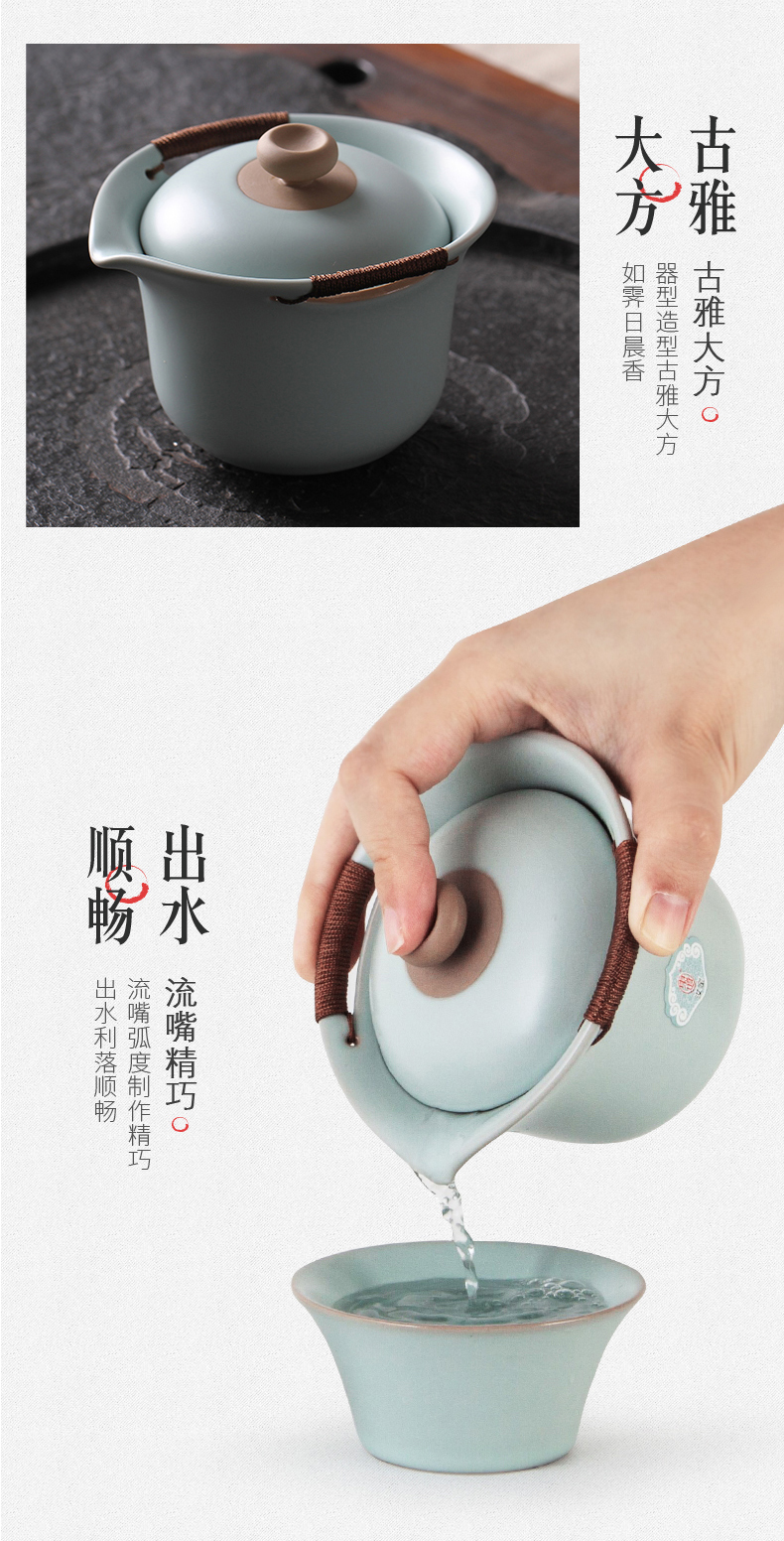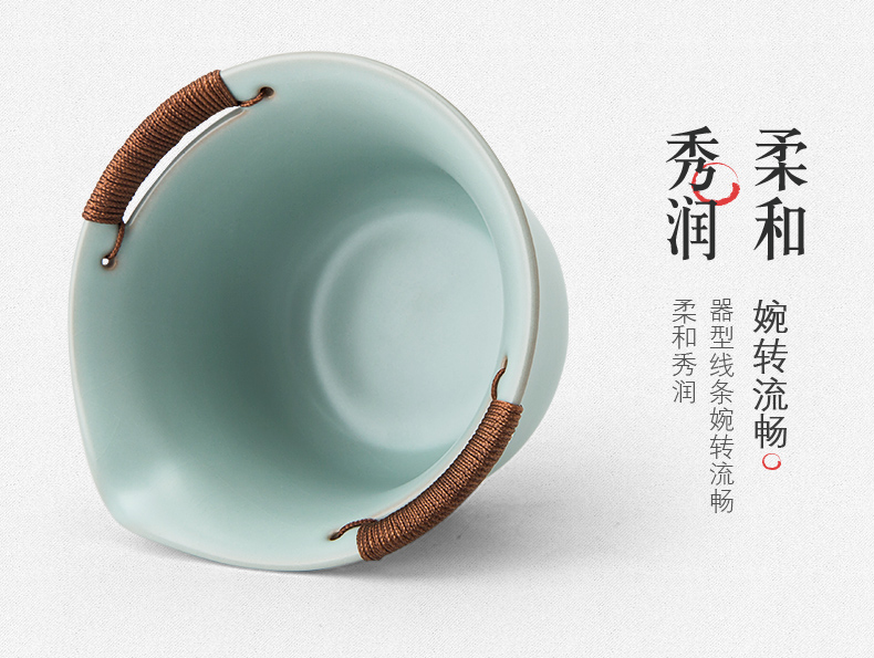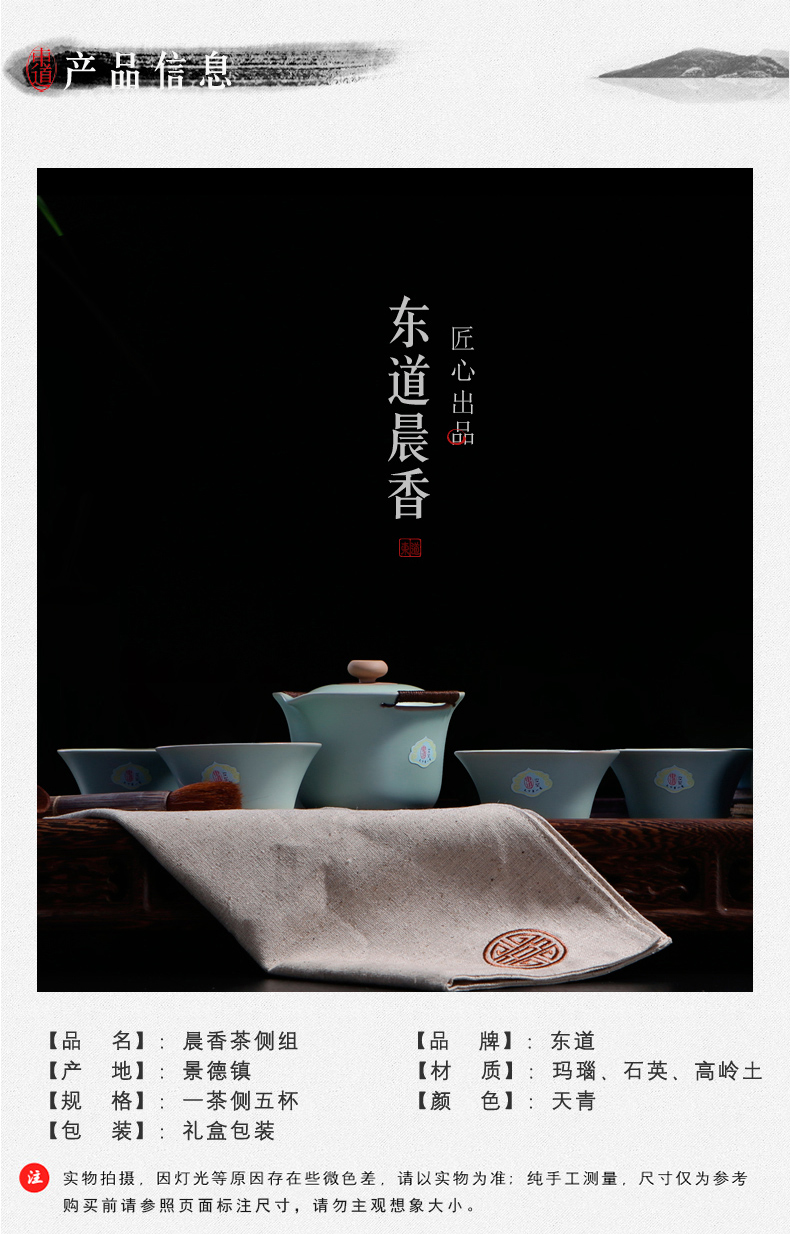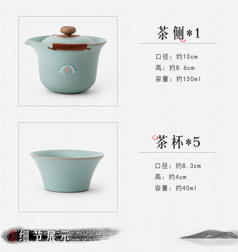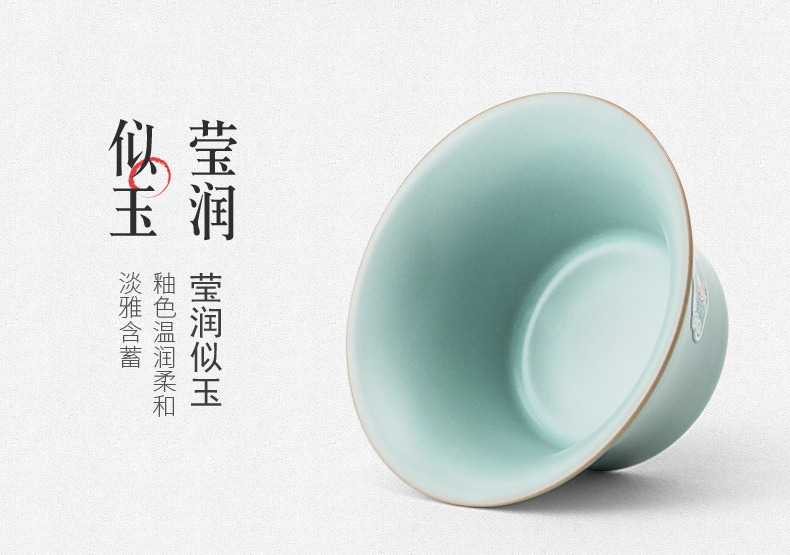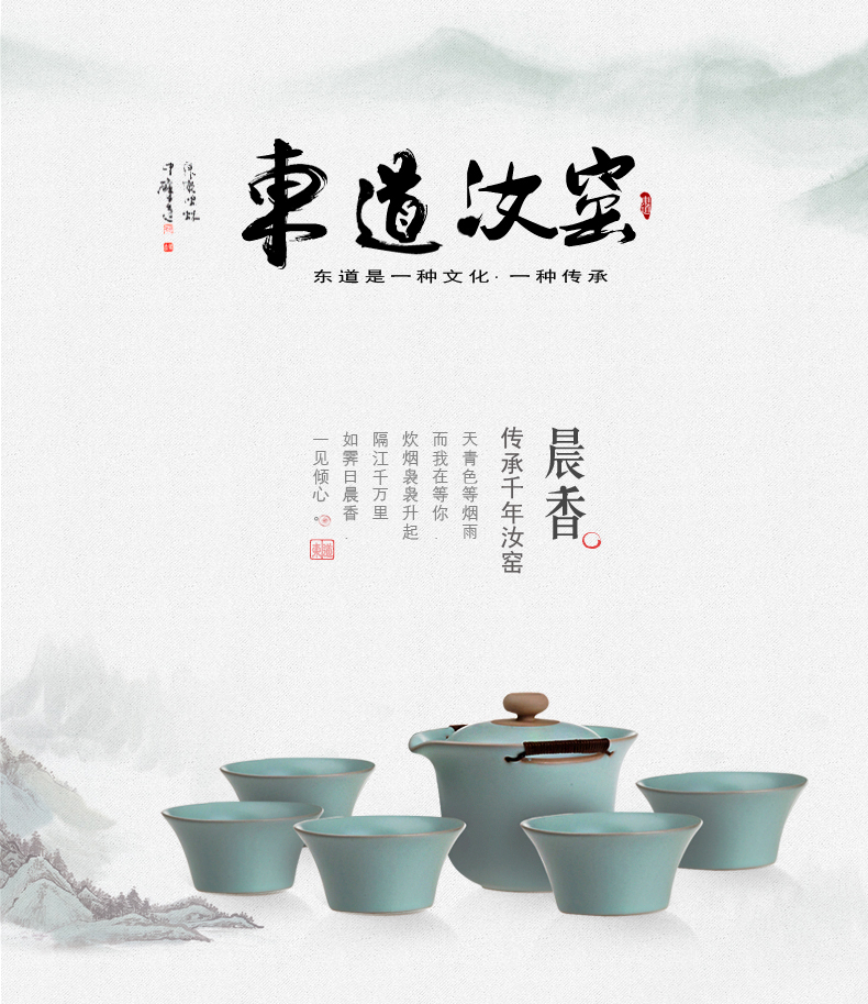 東道汝窯 功夫茶具套裝 晨香側(cè)杯組 一碗五杯(天青色)