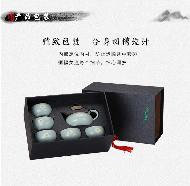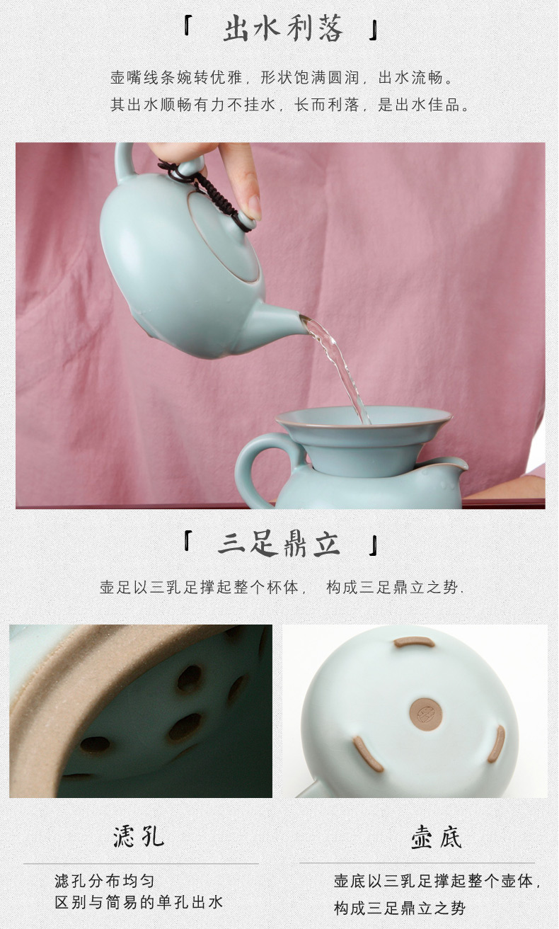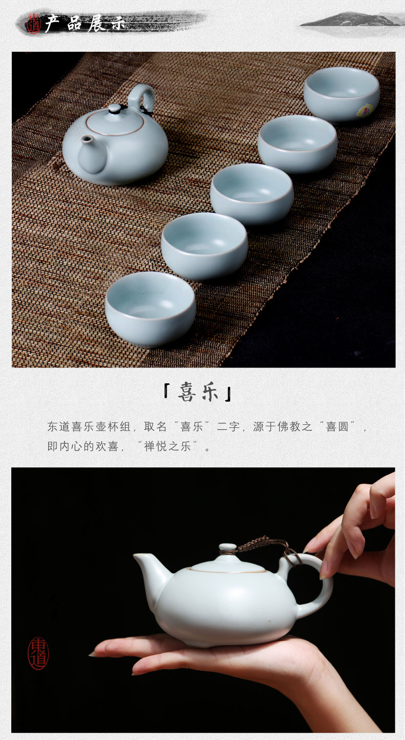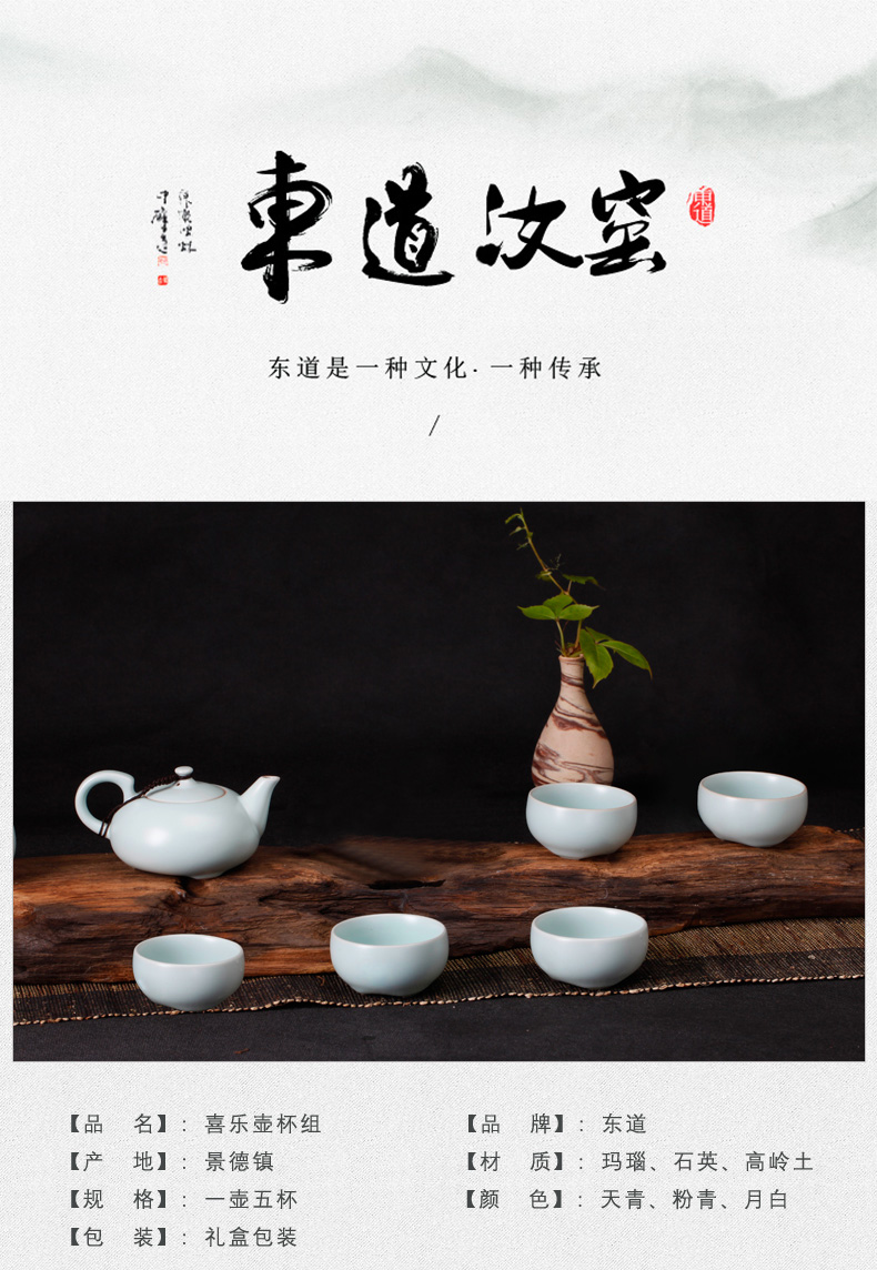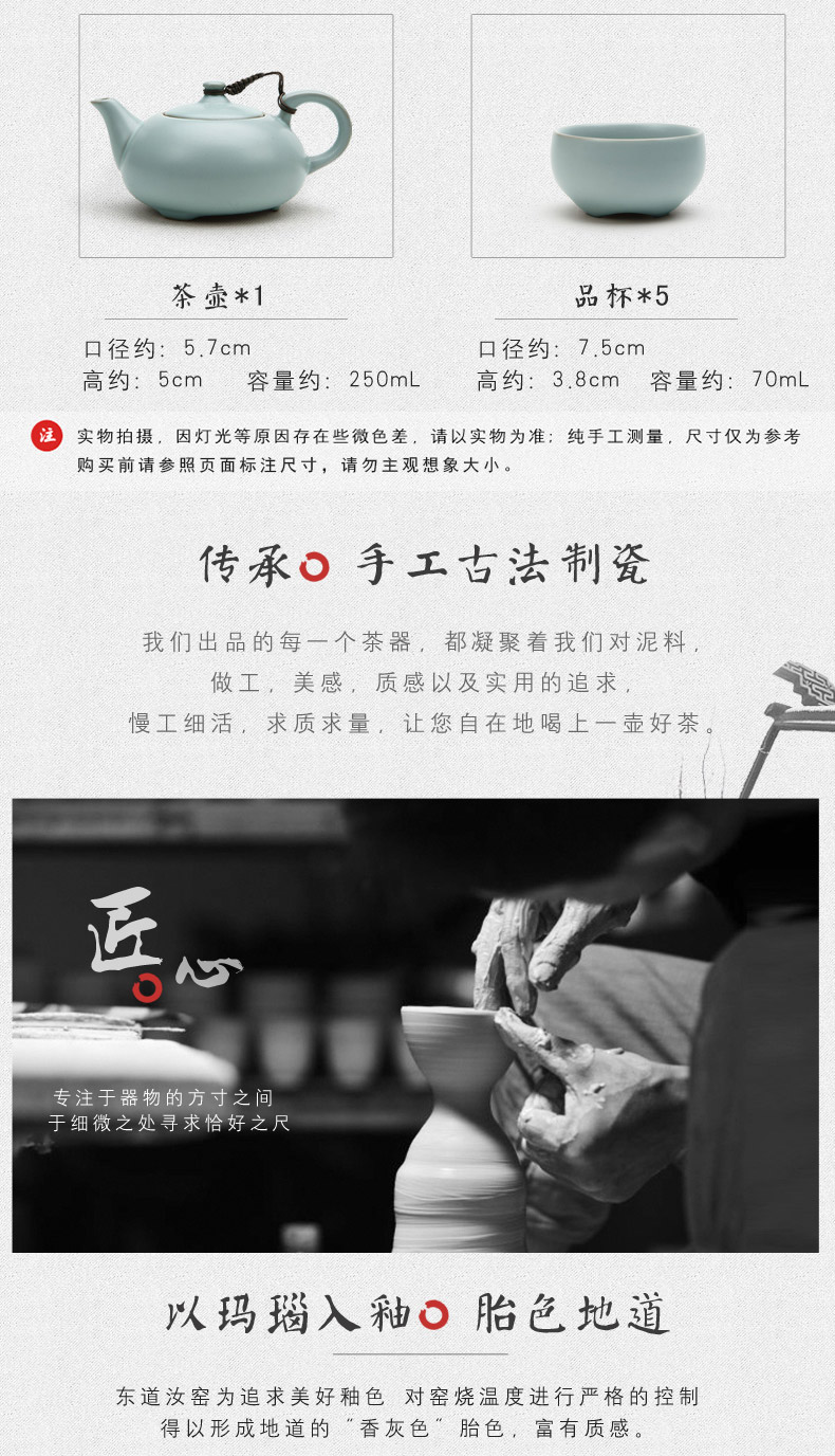 東道汝窯 功夫茶具套裝 喜樂壺杯組/一壺五杯(天青色)
