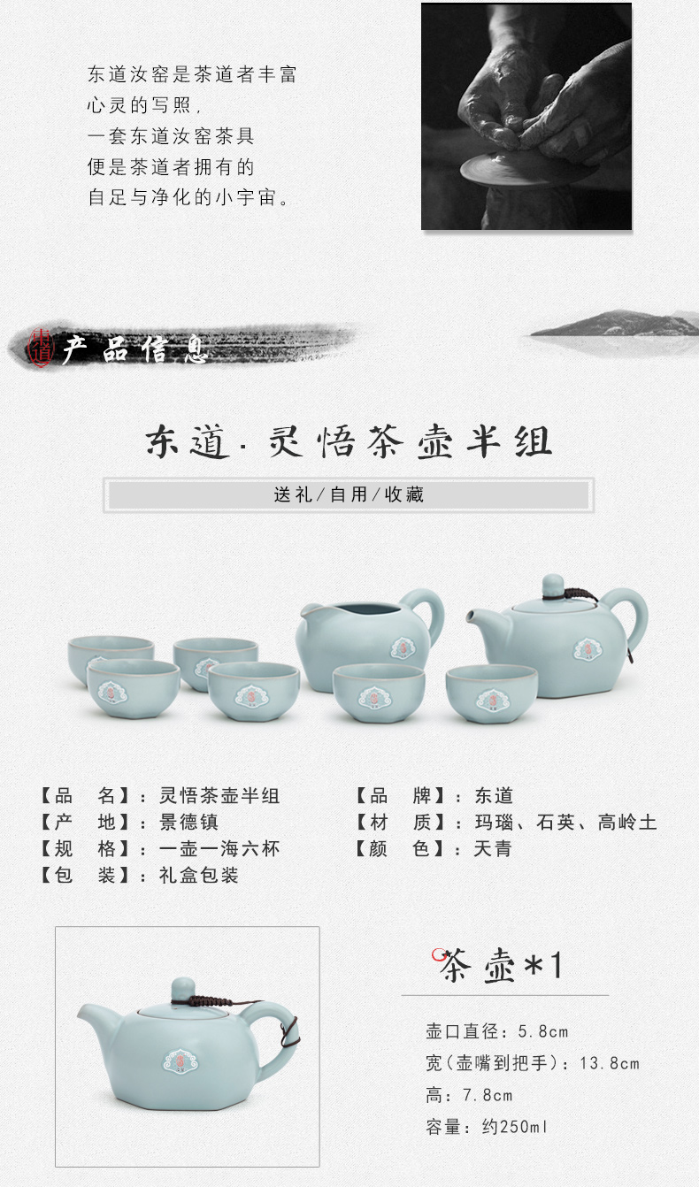 東道汝窯 功夫茶具套裝 靈悟茶壺半組(天青色)