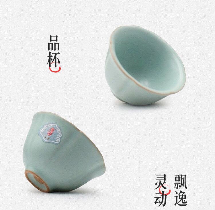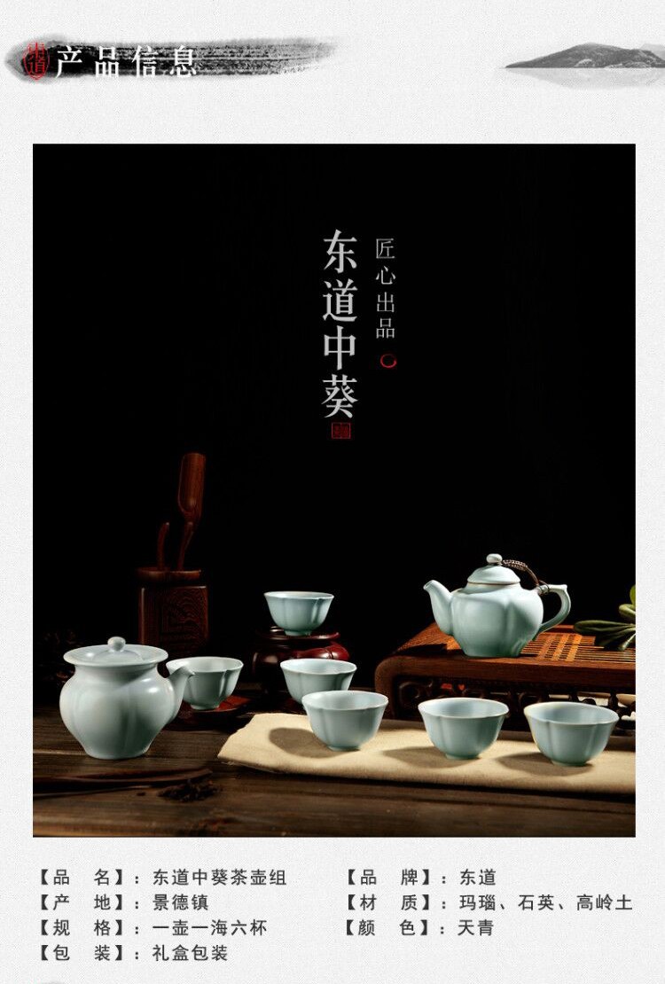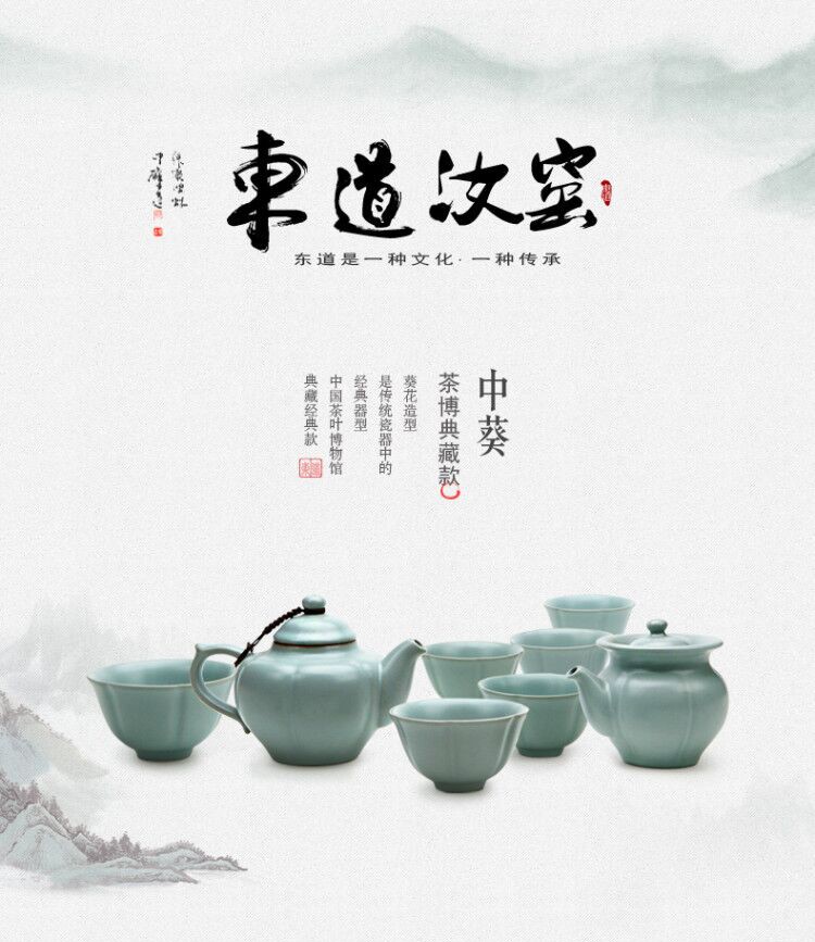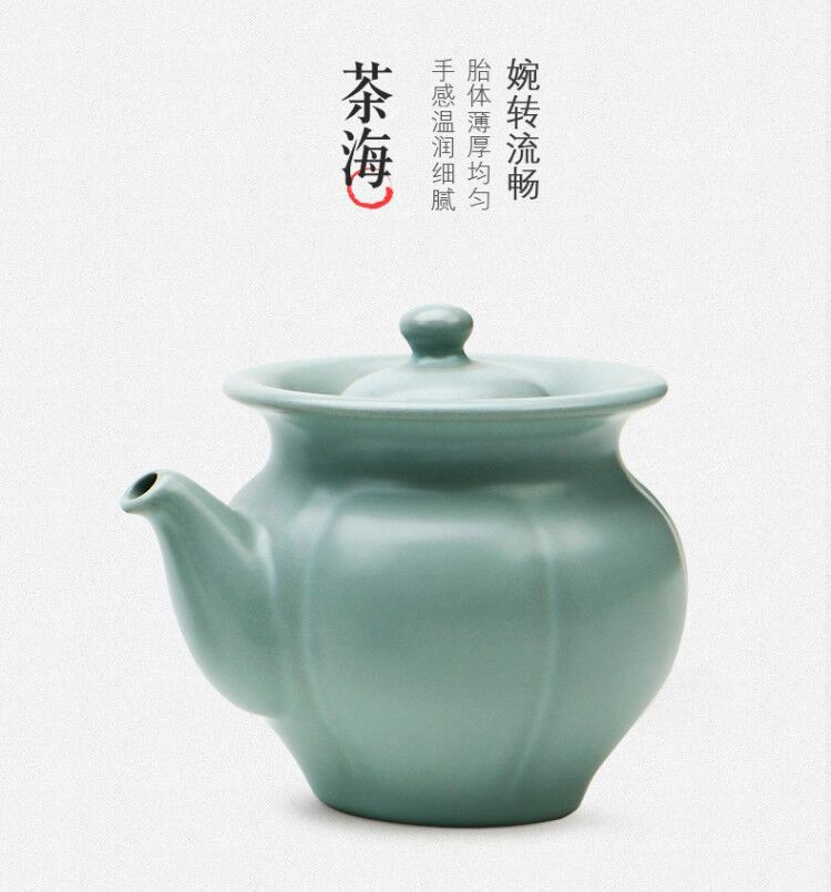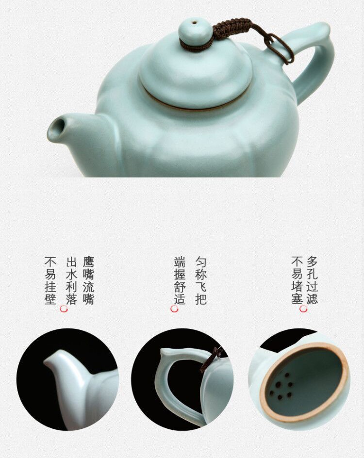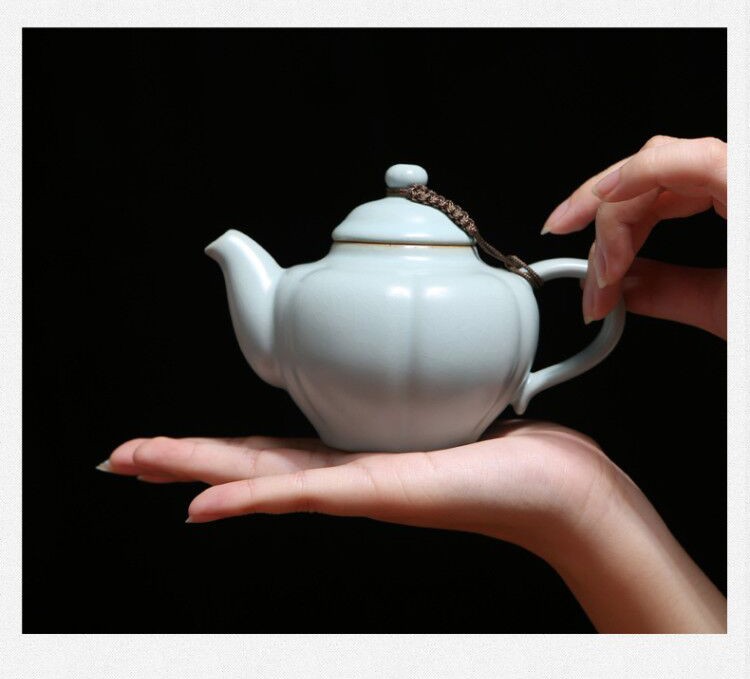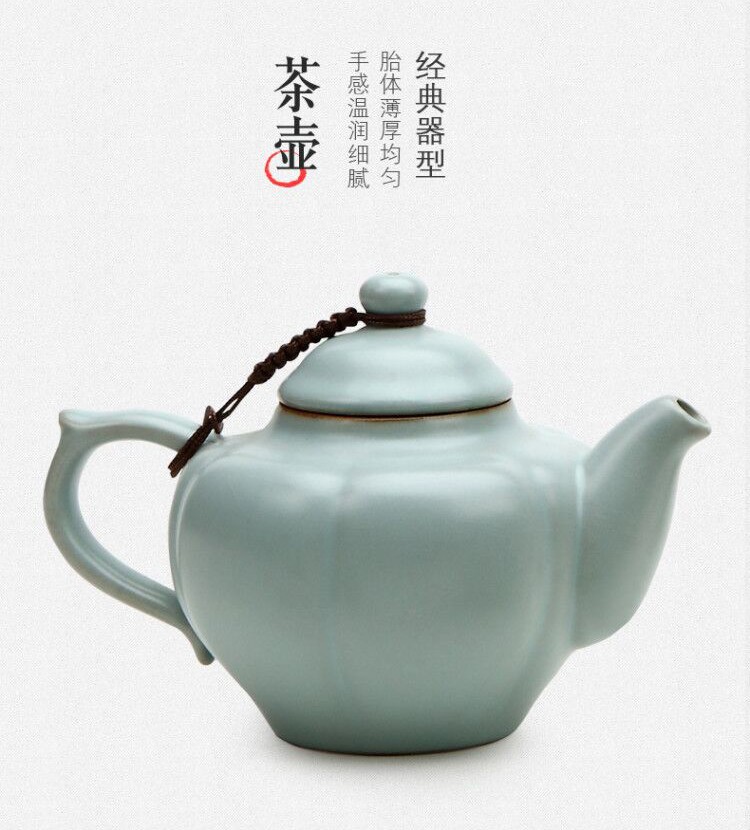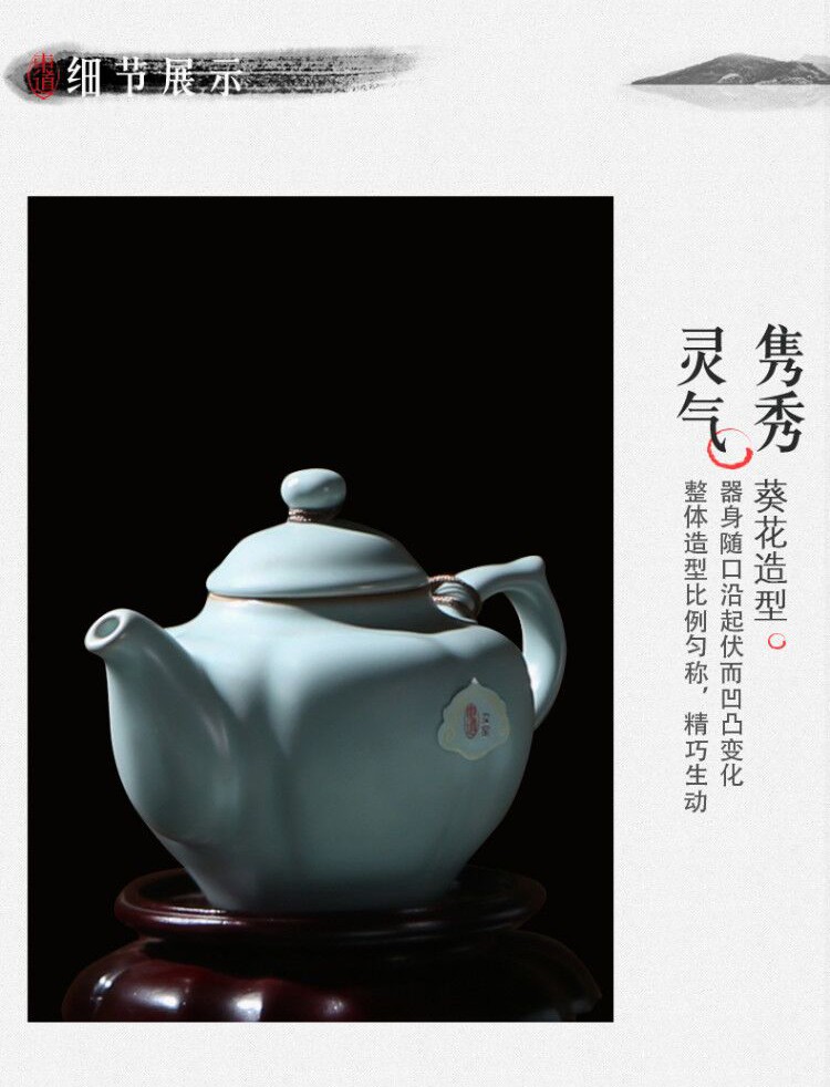 東道汝窯 功夫茶具套裝禮盒 中葵茶壺半組(天青色)
