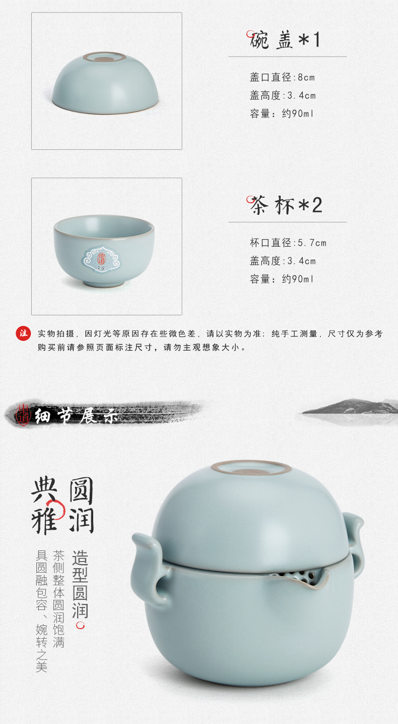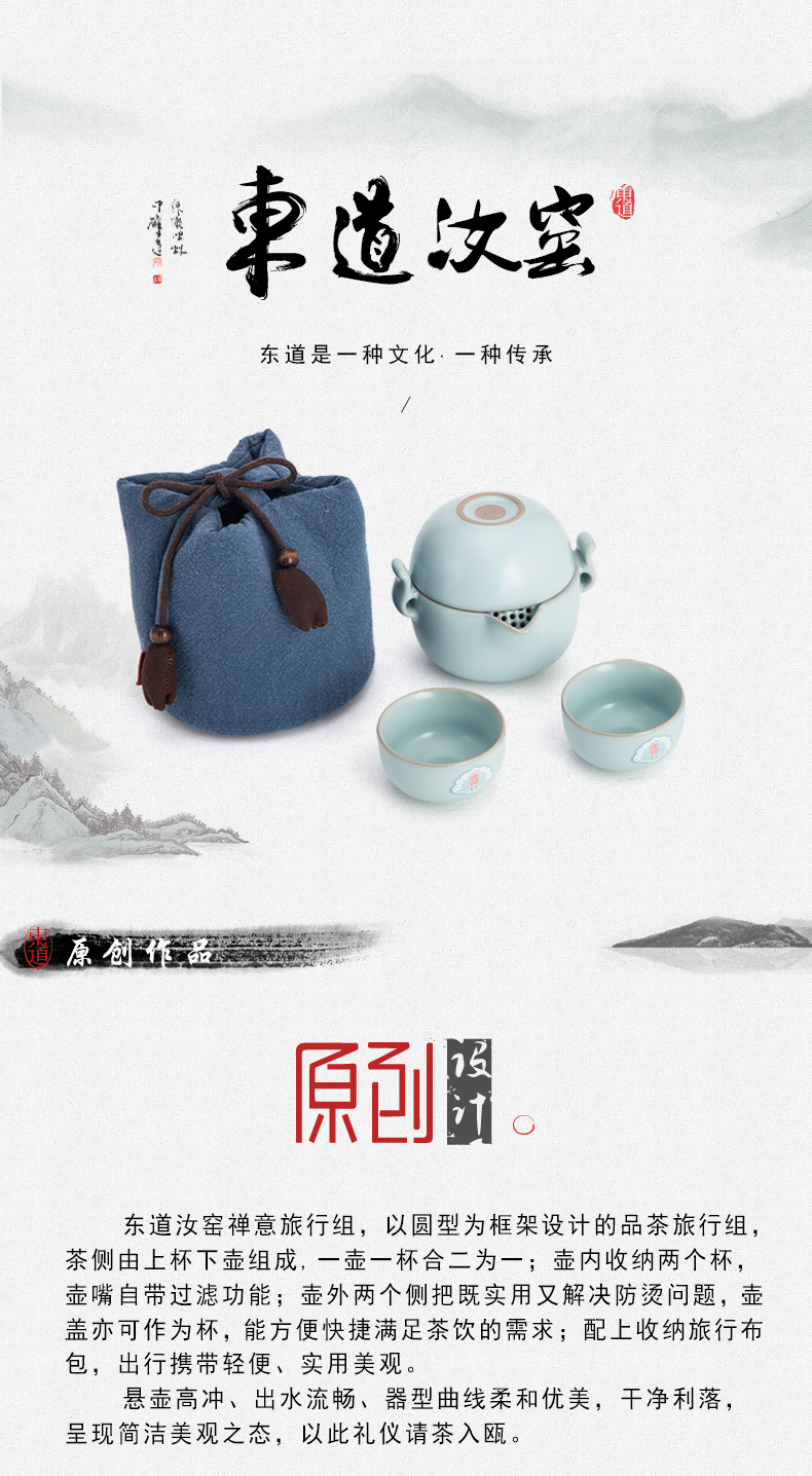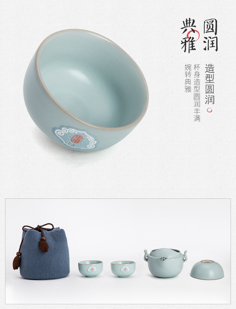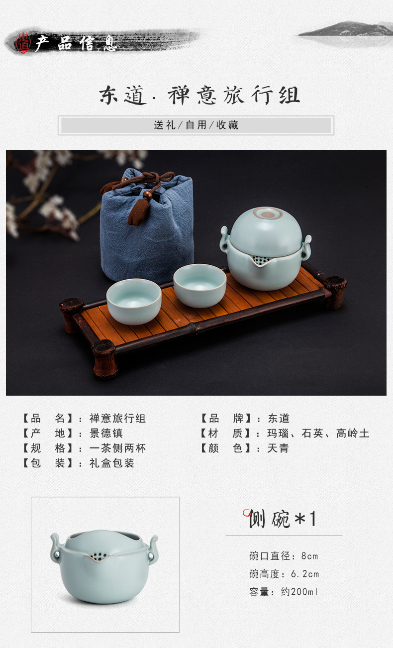 東道汝窯 功夫茶具套裝 禪意旅行茶具套裝/1茶側(cè)2杯(天青色)