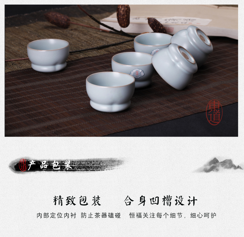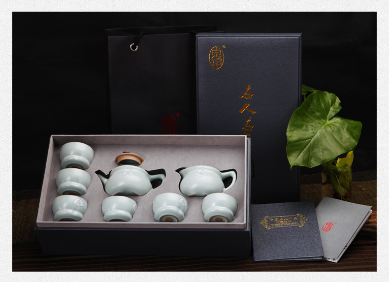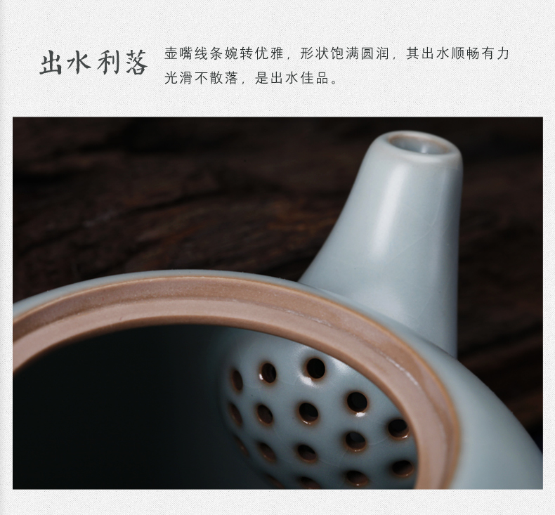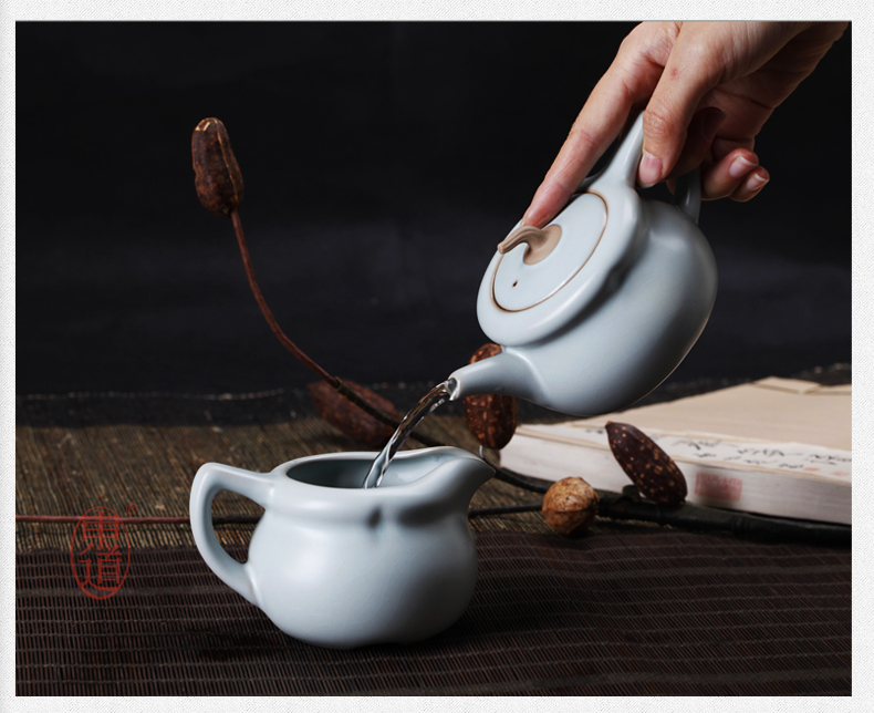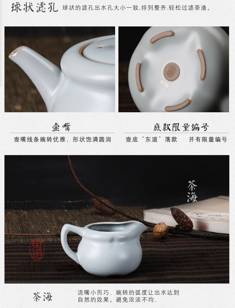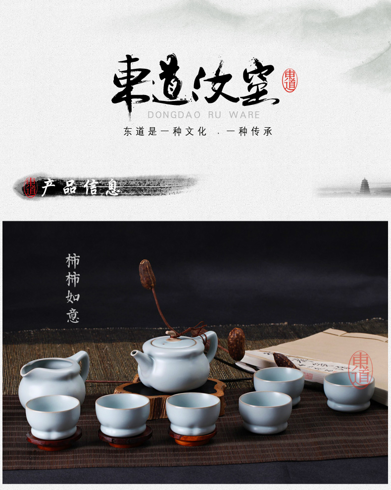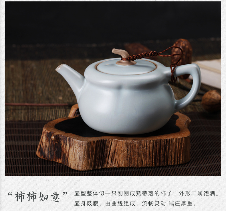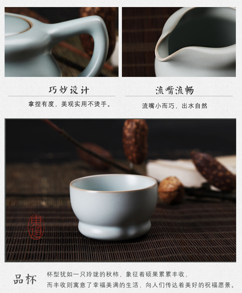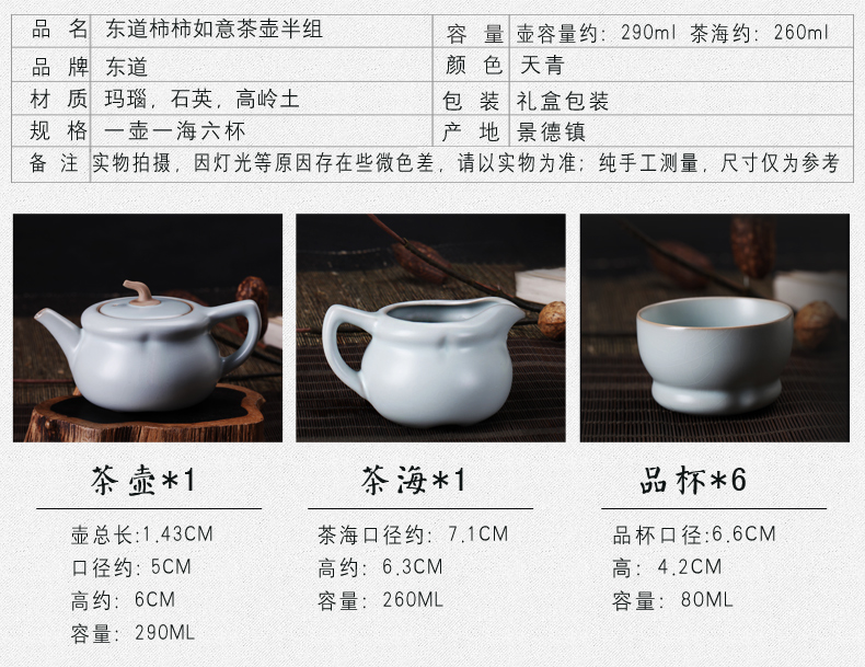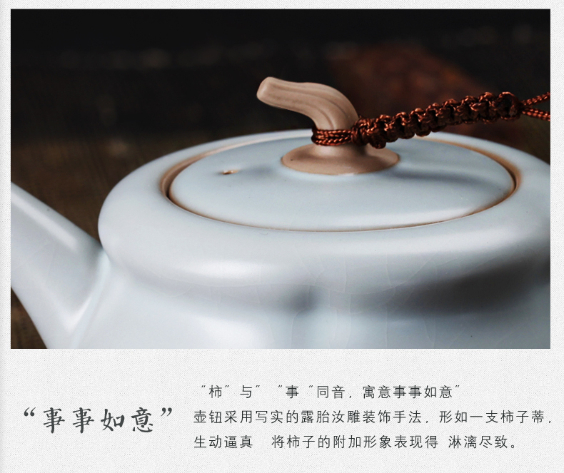 東道汝窯 整套功夫茶具 柿柿如意茶具套裝/1壺1海6杯(天青色)