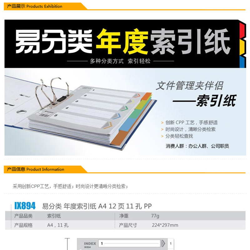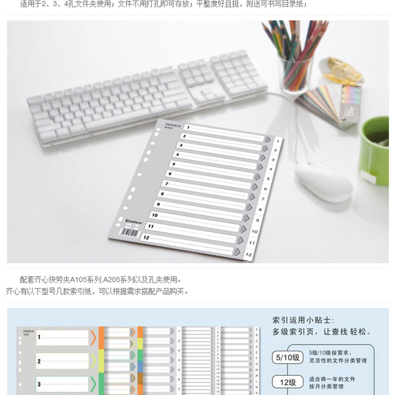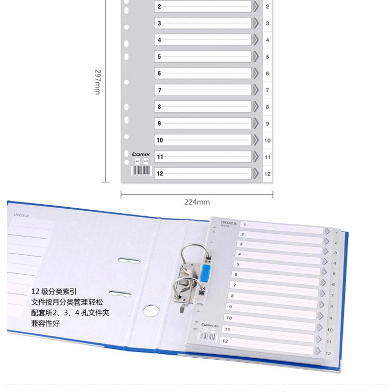 齊心(COMIX) IX894 易分類 年度索引紙 A4 12頁1-12 11孔 PP