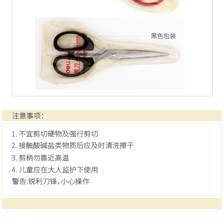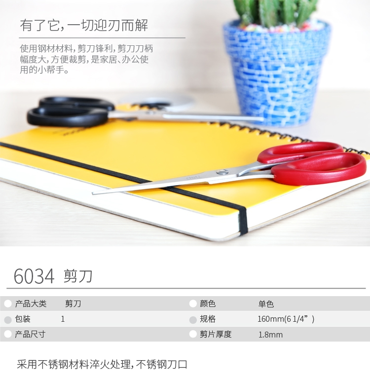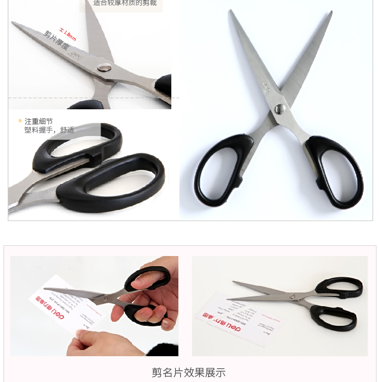得力(deli) 6034 160mm小號辦公生活剪刀 黑色